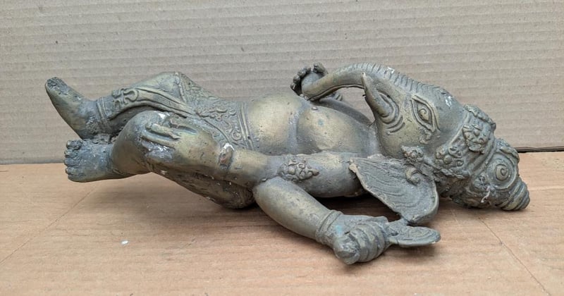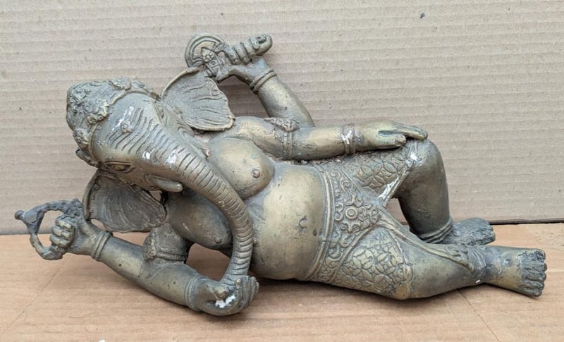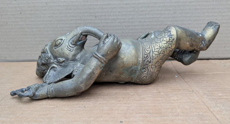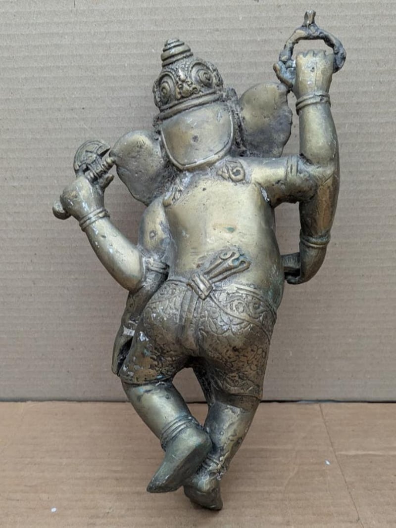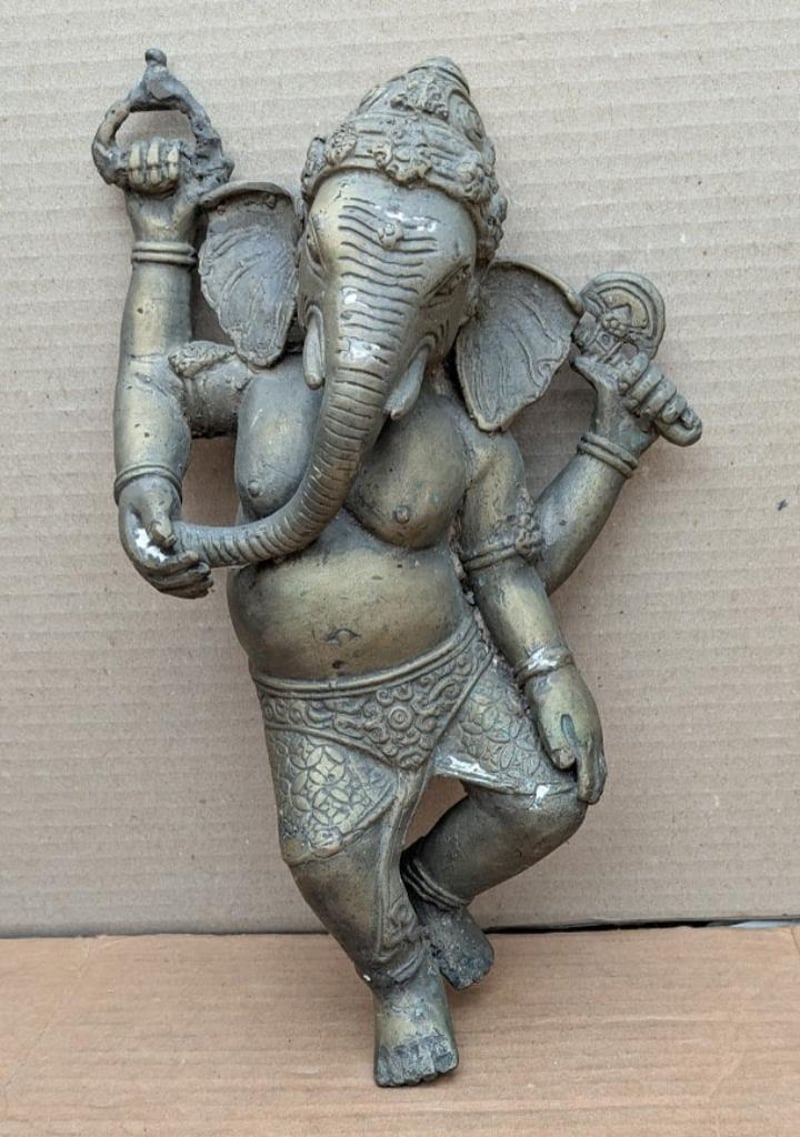 STATUE FIGURINE OF HINDU GOD - LORD GANESH, SOLID BRASS 2.6KG 29X18X9CM Condition: Good - Refer Images582898+9