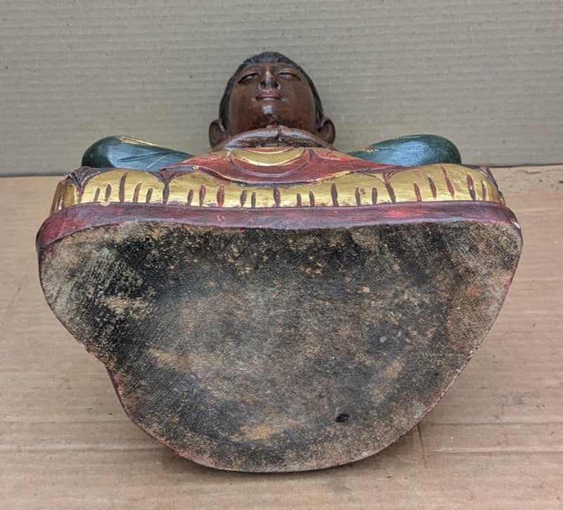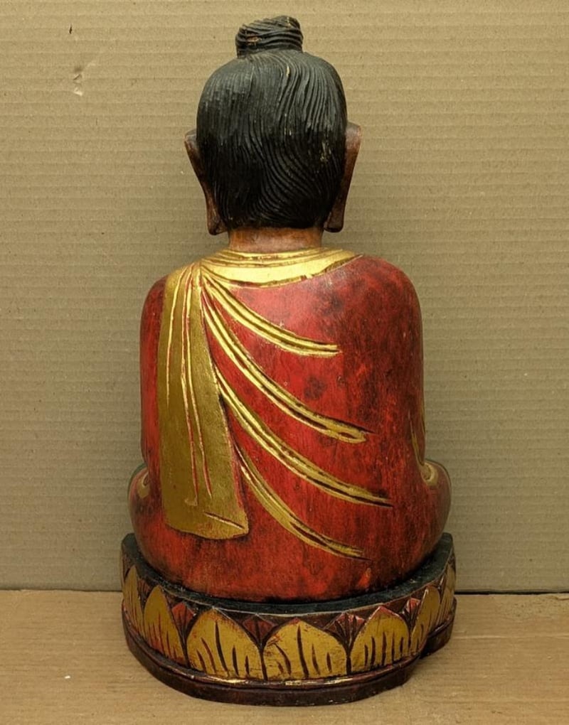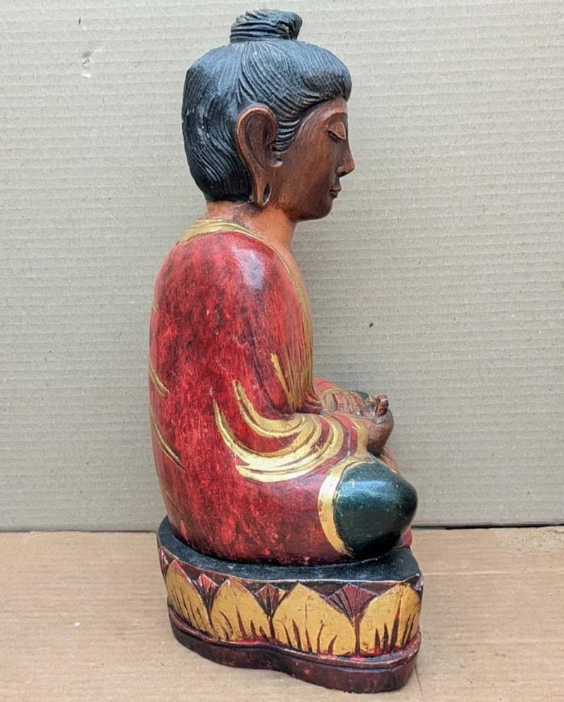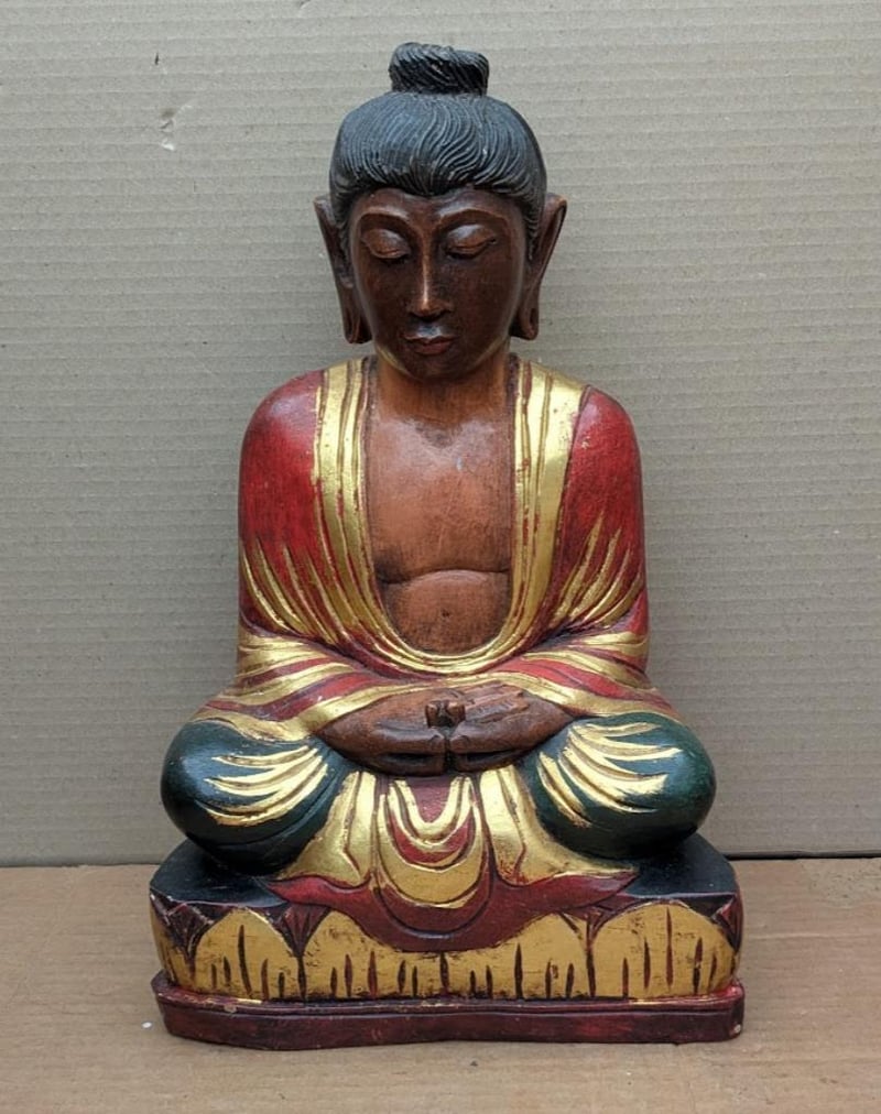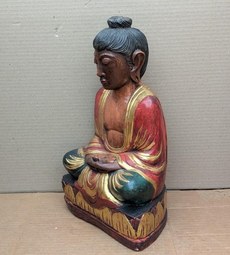 WOOD CARVED STATUE FIGURINE OF MEDITATING BUDDHA 35X22X14CM Condition: Good - Refer Images582898+15