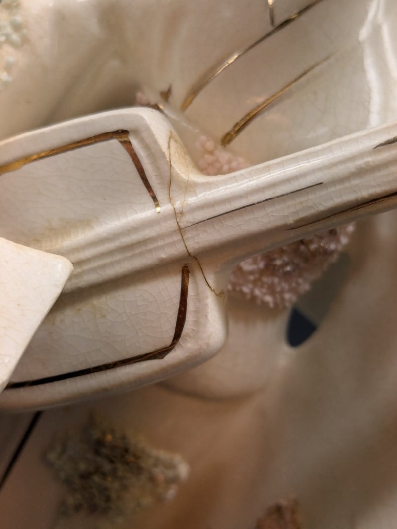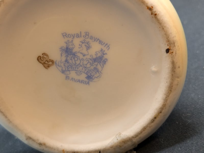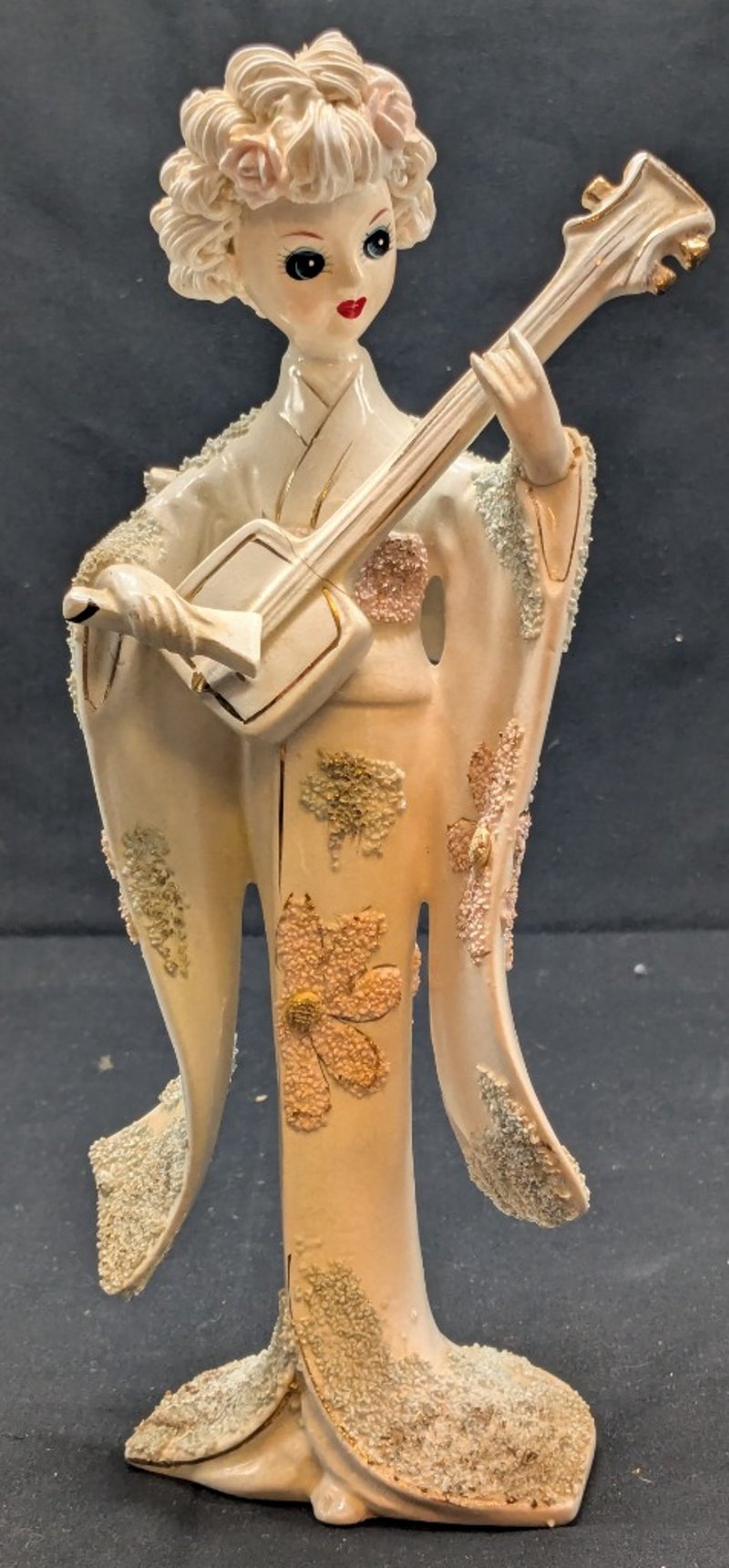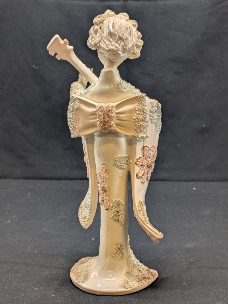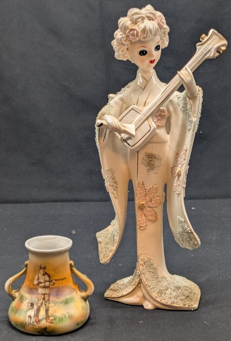 ROYAL BAYREUTH, BAVARIAN SMALL PITCHER AND UCAGCO JAPANESE CERAMIC GEISHA FIGURINE Note: Minor Crack In Guitar Neck Condition: Good - Refer To Images 584517+8