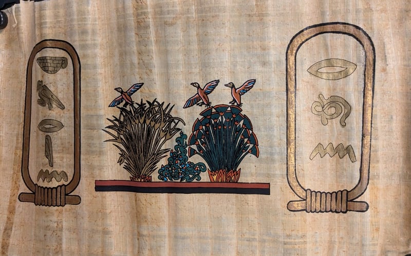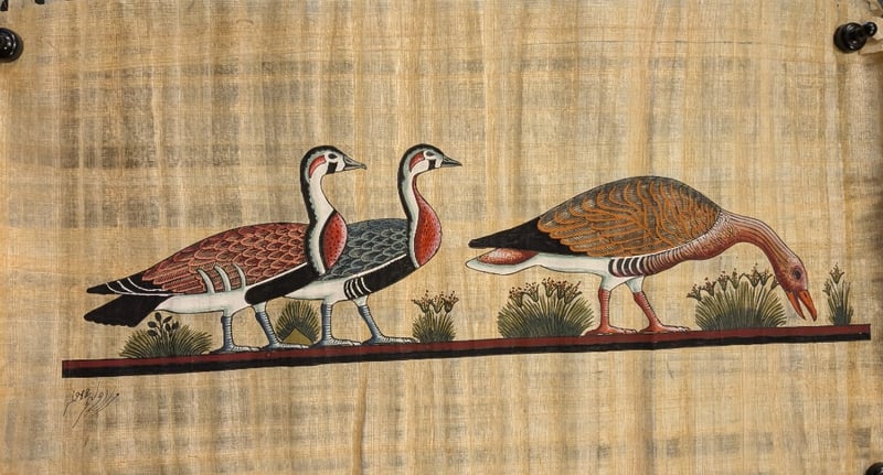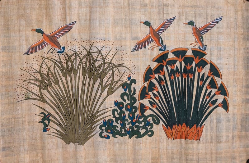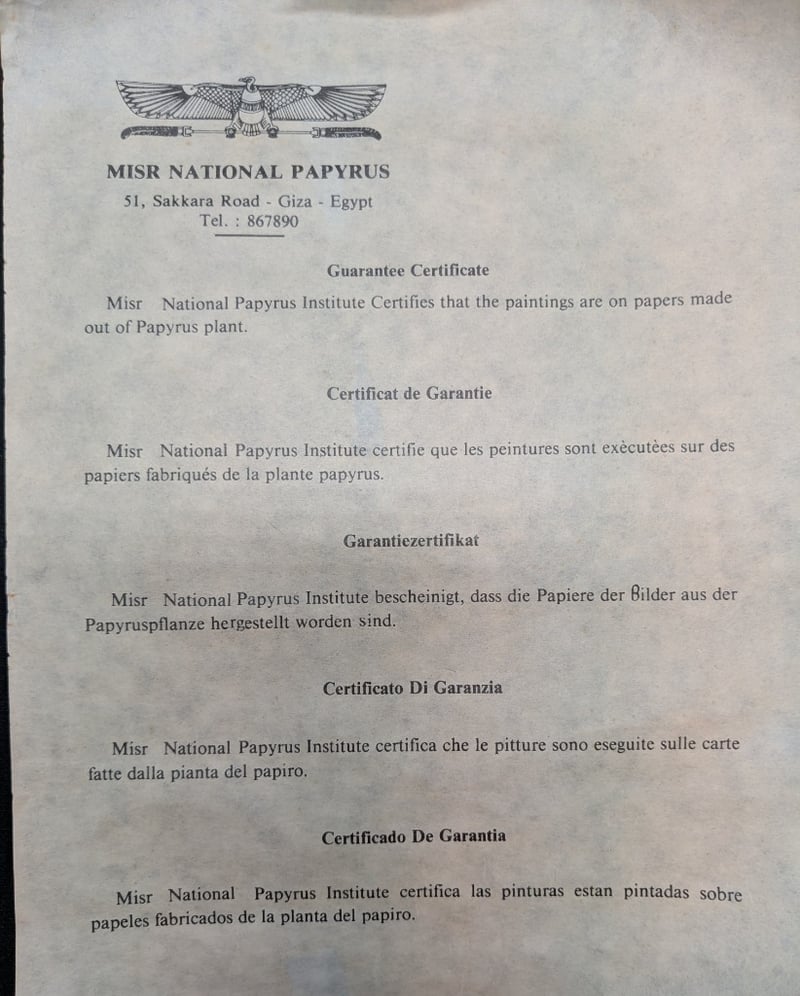 FOUR EGYPTIAN PAPYRUS PAINTING PRINTS Includes Misr National Papyrus Certificate Dimensions Approx: 94 X 64, 58 X 33, 42 X 31, 42 X 26 Condition: Good - Refer To Images 584517+17