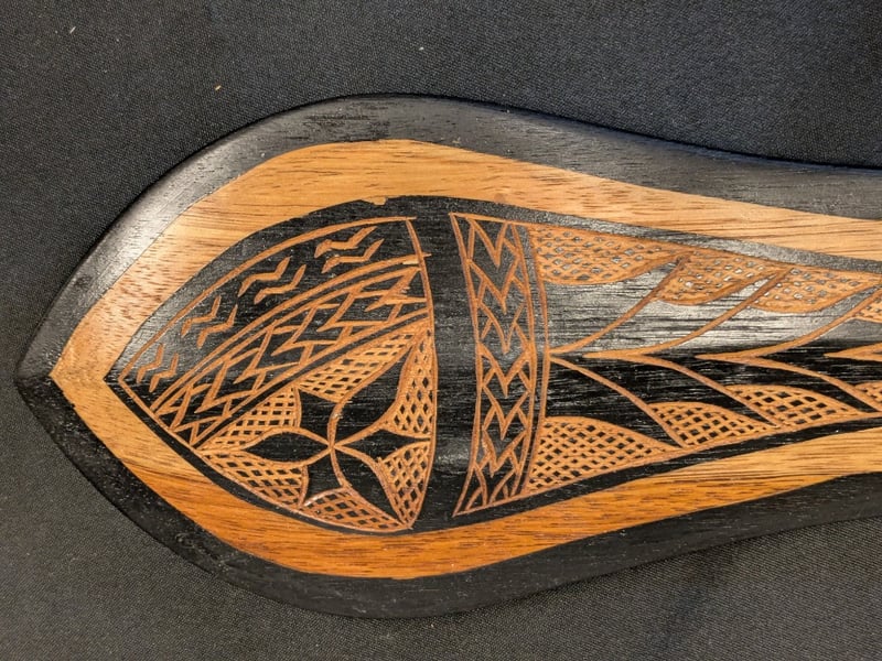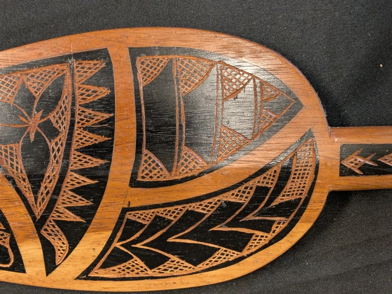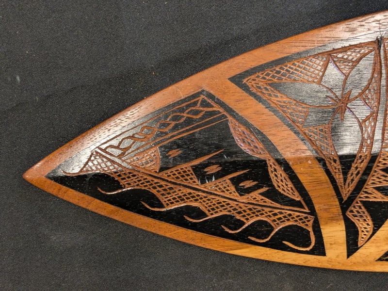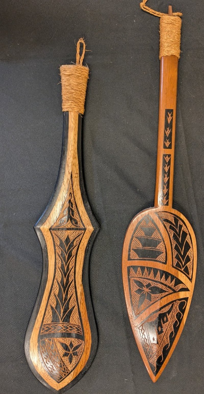 CARVED ULIMASAO PADDLE AND NIFO OTI WAR CLUB Dimensions Approx: 70Cm (L) X 16Cm (W) Condition: Good - Refer To Images 584476+7