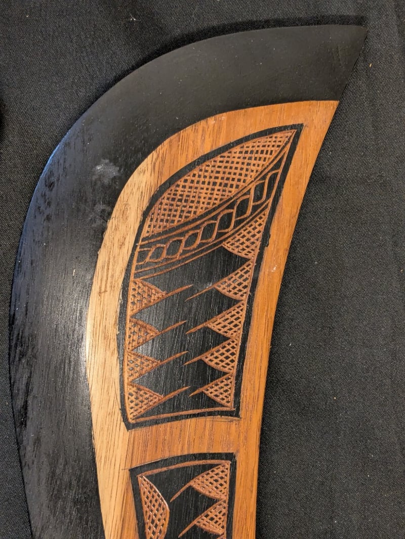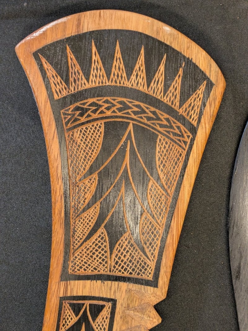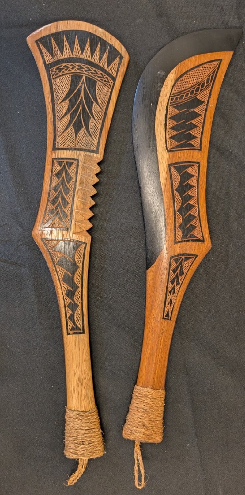 TWO POLYNESIAN NIFO'OTI CARVED ORNAMENTS