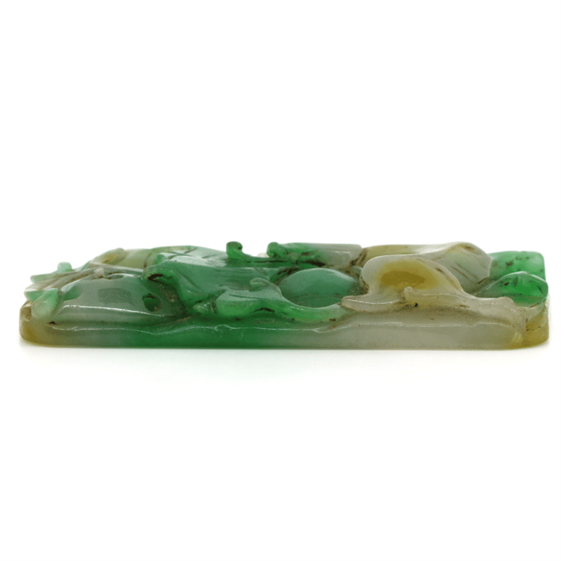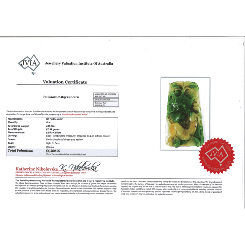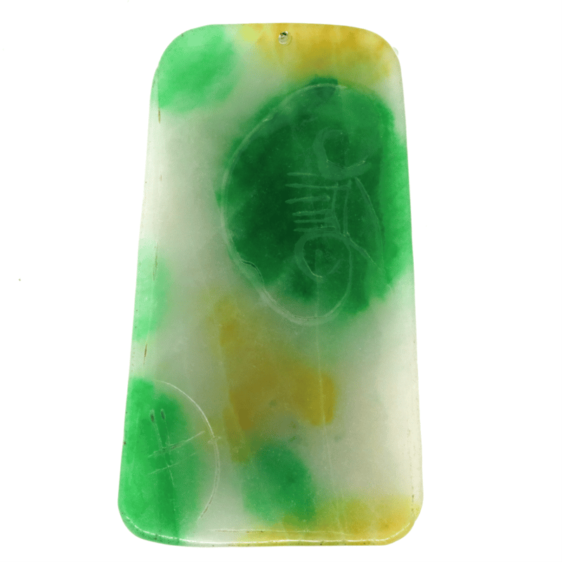 The Jade Features A Variety Of Light To Dark Shades Of Green And Yellow, Opaque Clarity And 87.59 Grams.