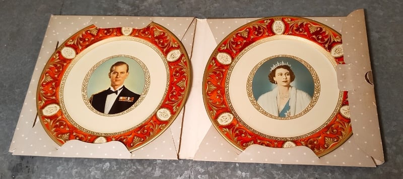 1950'S QUEEN ELIZABETH AND DUKE OF EDINBURGH COMMEMORATIVE METAL SOUVENIR PLATES 584503+3