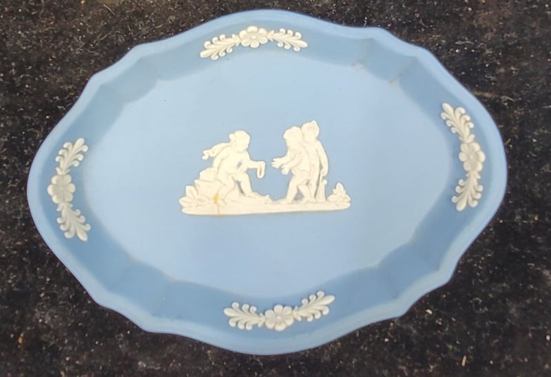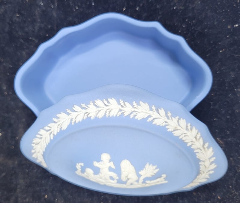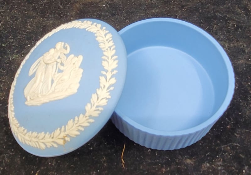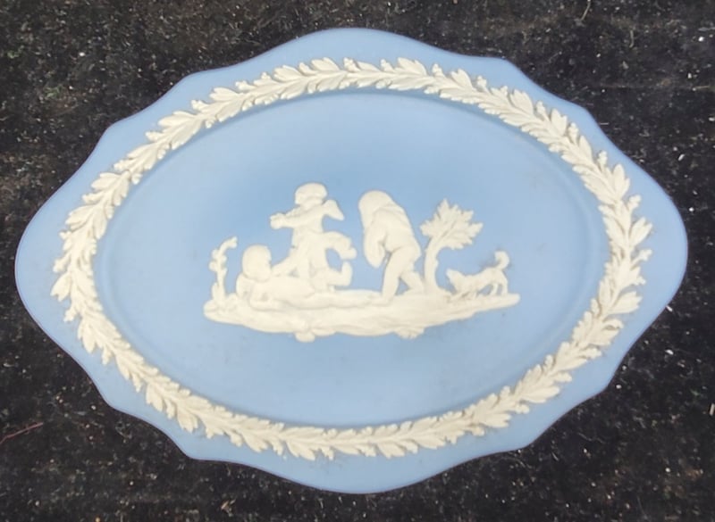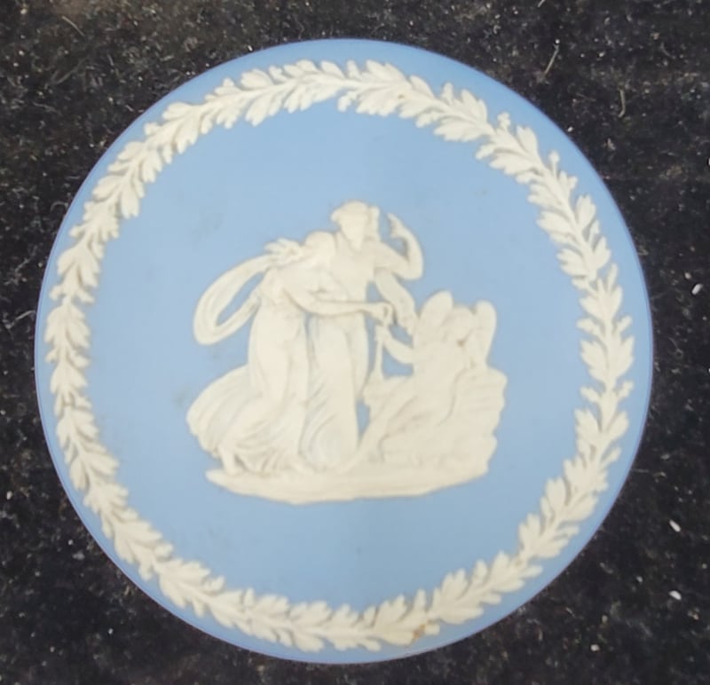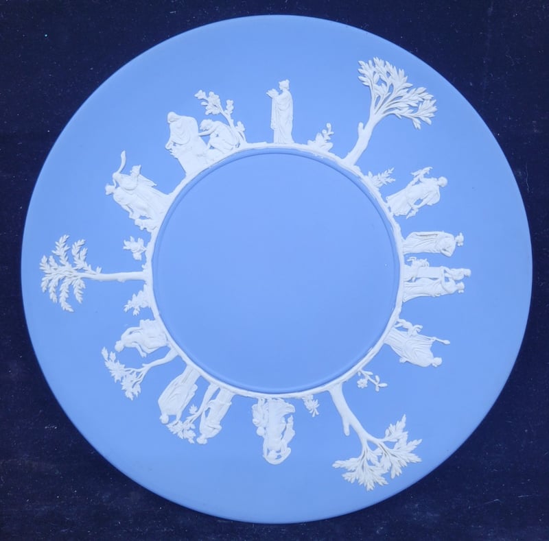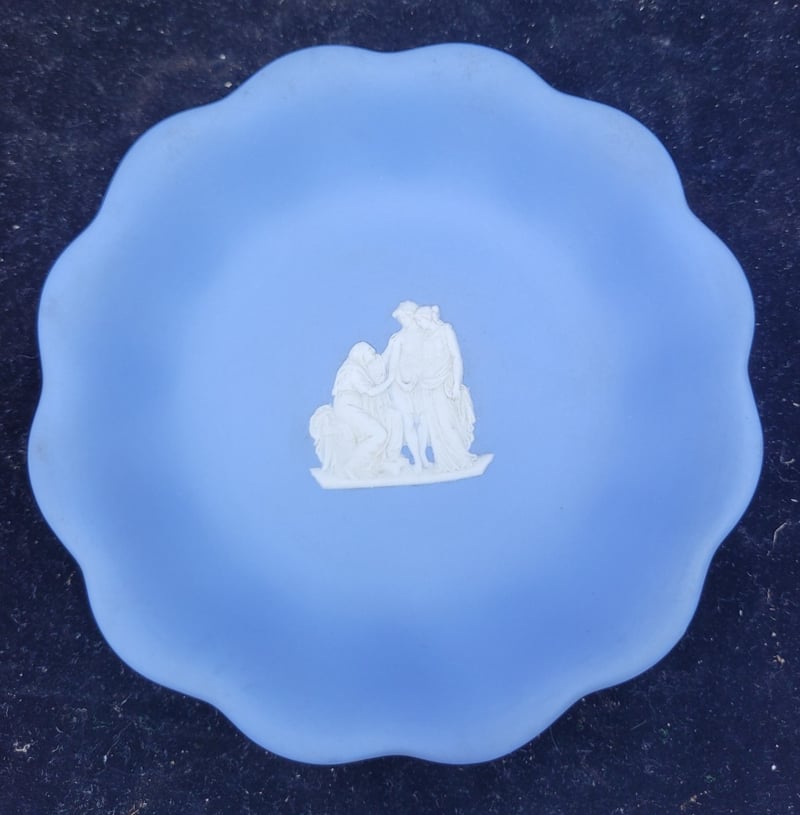 COLLECTION OF WEDGWOOD JASPERWARE POTTERY PIECESIncludes Various Items:Plates, Dishes, Vase And Trinket Boxes In Iconic Blue Color With White Cameos.Orange-Red BowlCondition: Good - Refer To Images582910+11