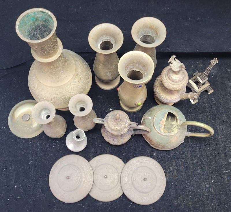 COLLECTION OF DECORATIVE TABLEWARE WITH METAL VESSELSCondition: Good - Refer To Images587926+1