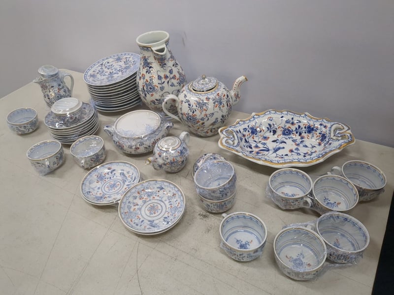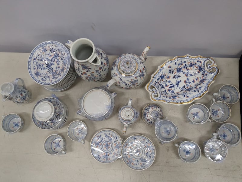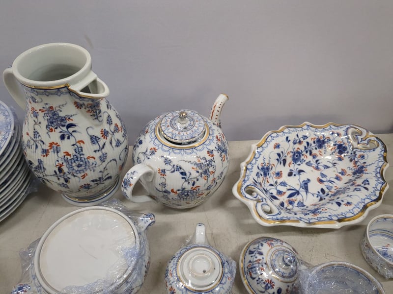 ANTIQUE CHINESE BLUE AND WHITE PORCELAIN DINNER SERVICE WITH FLORAL DECORATION