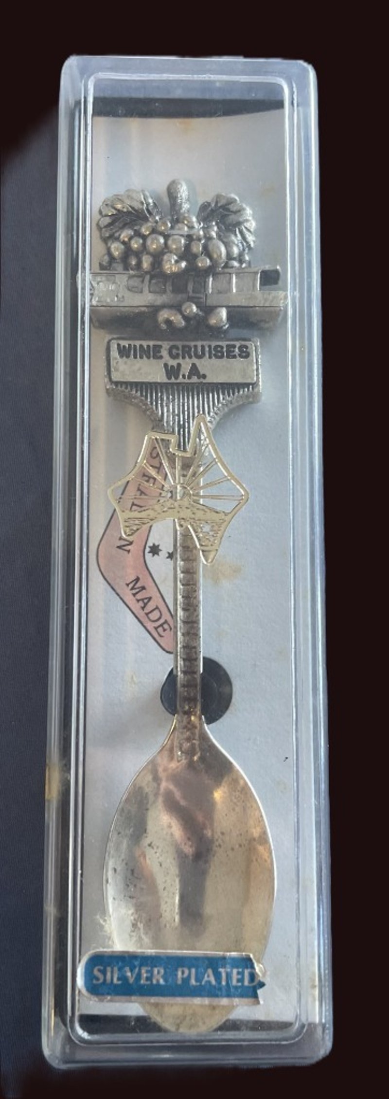 SILVER PLATED SPOON - WINE OF WAItem Size: Height: 2cm, Width: 14cm, Depth: 4cm, Weight: 0.5KgCondition: Good - Refer To Images587946+22