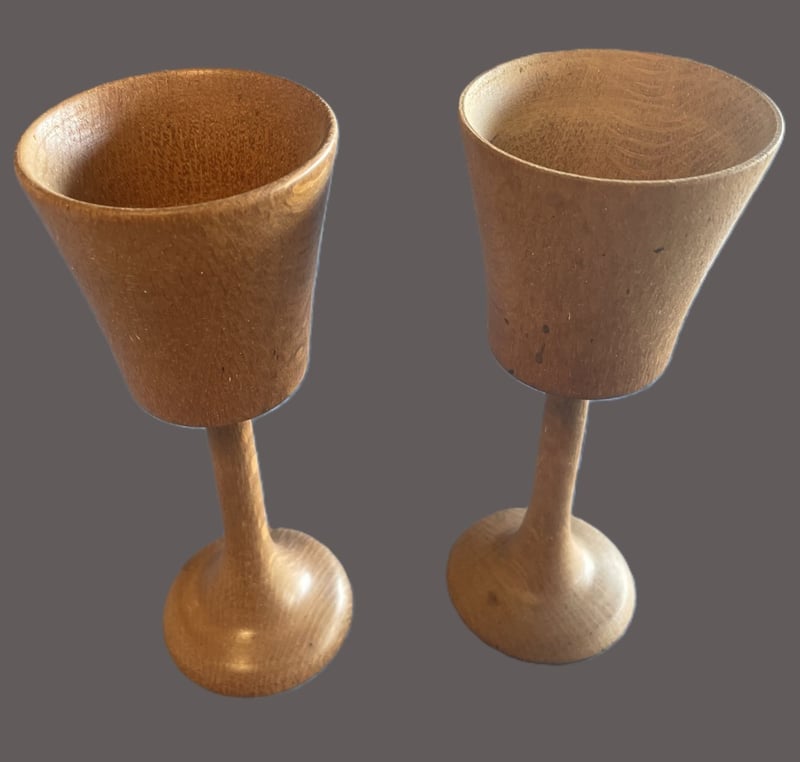 2 X WOOD TURNED GOBLETS SILKY OAK