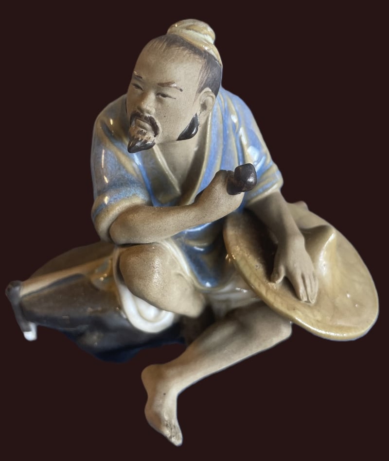 CHINESE FISHERMAN FIGURINEItem Size: Height: 10cm, Width: 10cm, Depth: 11cm, Weight: 0.5KgCondition: Good - Refer To Images587946+23