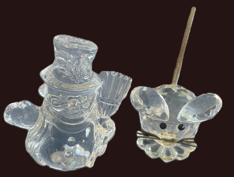 2 X CRYSTAL FIGURINES - SNOWMAN AND MOUSE