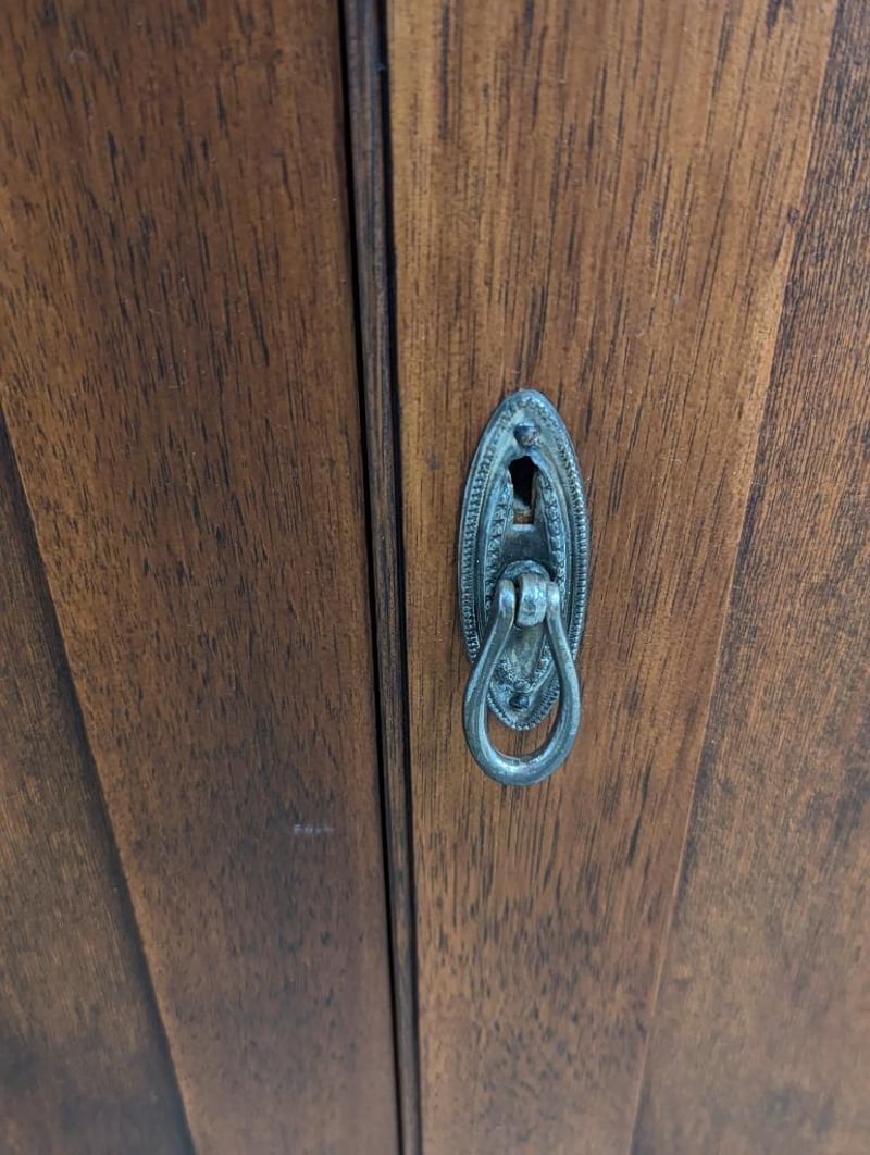 Two Doors, Interior Features On Shelf And Cabinet Base, Metal Door Handle (Bottom)