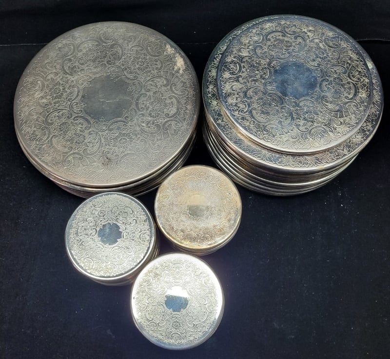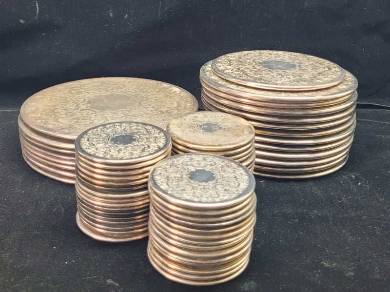 COLLECTION OF STRACHAN PRODUCTIONS OLD SHEFFIELD REPRODUCTION SILVERWARE COASTERS AND PLACEMATS