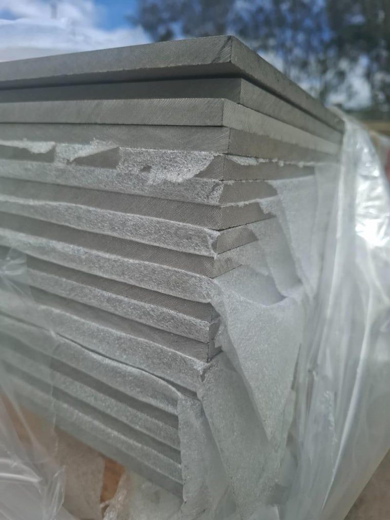 RRP $567ea, Silbonit Fibre Cement Sheeting CFC Hydro 8mm 1.2 x 3m 011, 011 HA –Pietra Qty: 25 pieces Bid Per Pack, Must Take 25 SILBONIT panels are produced by Società Italiana Lastre, an Italian company specialized in fibercement panels production since 1961. Silbonit boards can be used for several applications, but their core market is represented by ventilated facade and interior cladding. Its excellent mechanical characteristics make it one of the most suitable cladding materials for reliable, elegant and high quality solutions. Colour nuances, little conglomerates of raw materials and faint smoothed lines characterise its surface. A water repellent, colourless substance scattered on the boards, reduces absorption, helping the panel to finish its aging for the next 2/3 years. It also helps to reduce water and dirt spots. This treatment exalts the natural features of the surface, keeping the innate authenticity of this product unchanged for a long time.