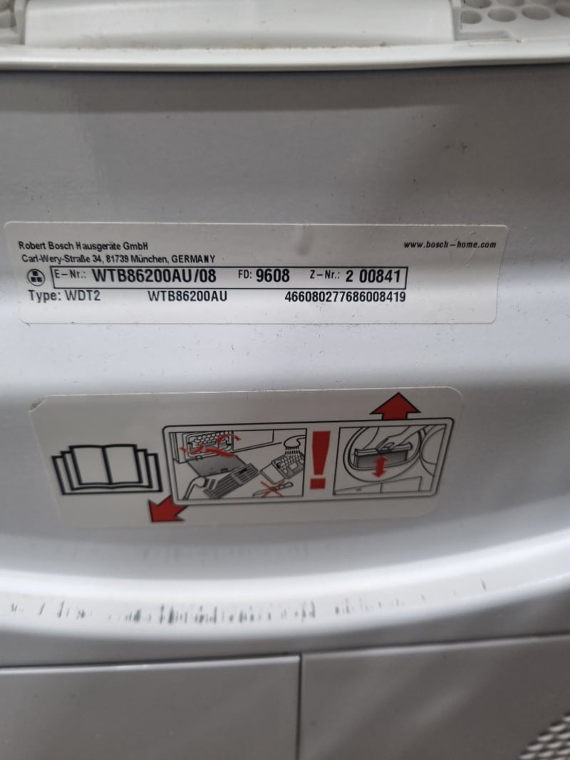 Bosch Avantixx WTB86200AU/08 condenser tumble dryer in white. 8kg capacity with digital display.