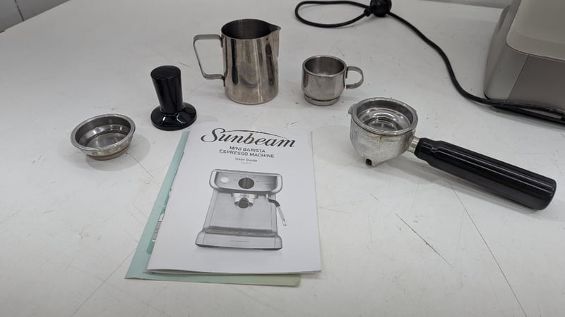 Mini Barista Espresso Machine, Sunbeam, Model: EM4300, With Accessories, Dimensions: 33cm(H)×24cm(W)×28cm(D)