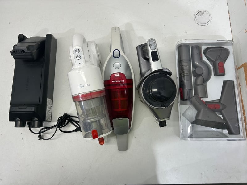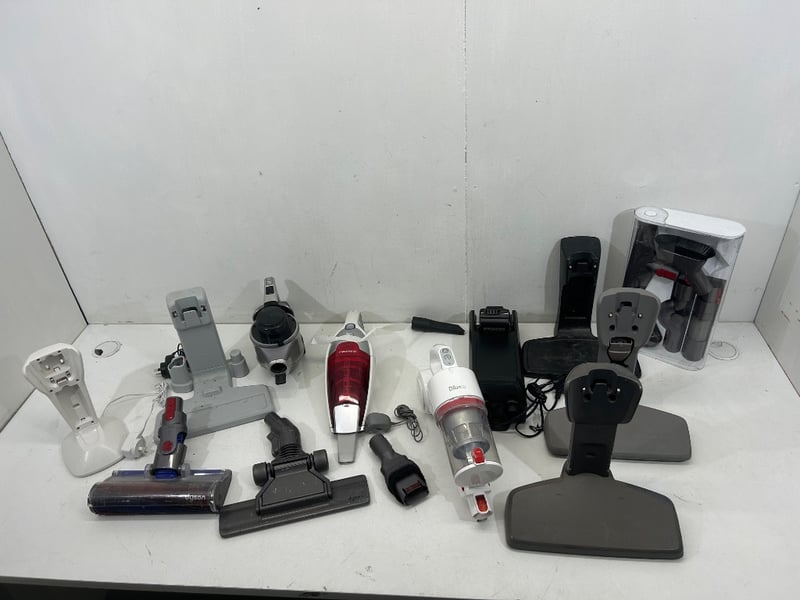 Cordless Vacuum Cleaners & Accessories (Untested), Brands / Models identified includes, Dibea cordless handheld vacuum – Model DW200, Electrolux cordless handheld vacuum – Model ZB406, Bellini cordless handheld vacuum (model not specified), Samsung charging dock / battery unit, Dyson vacuum units Quantity: 13, sold as lot