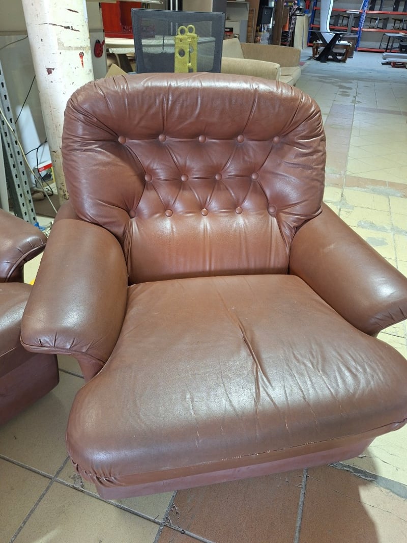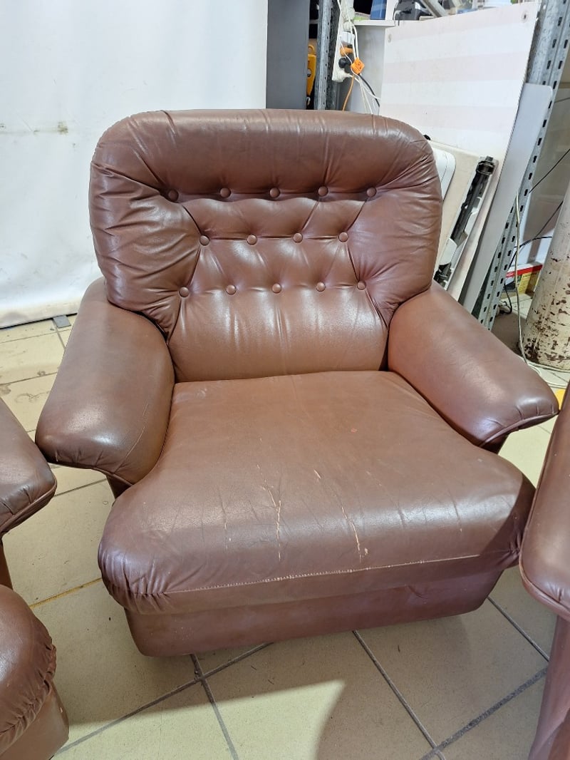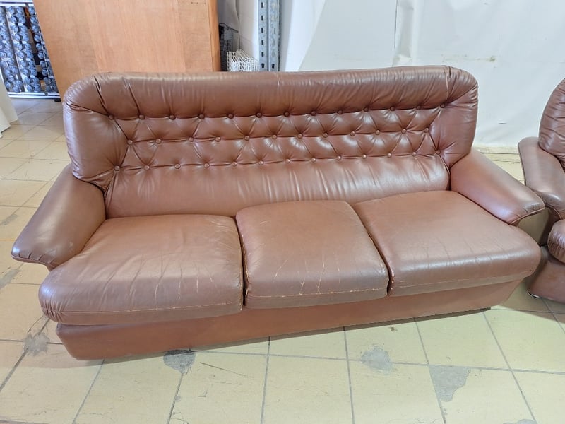 Lounge Set, 5-Seater, Leather Style, Brown Finish