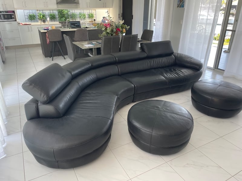 4-Seater Sofa With x2 Ottoman, Leather Style, Black FinishSOLD AS LOT