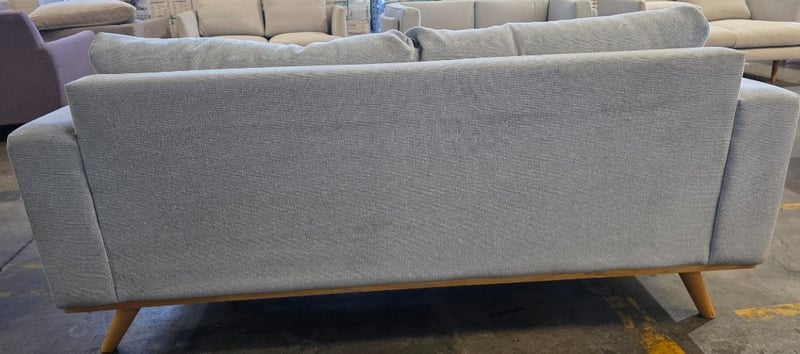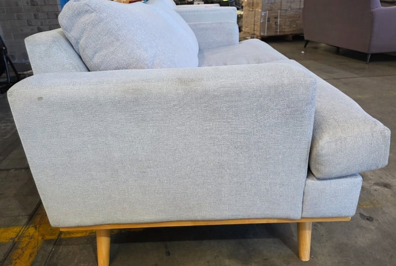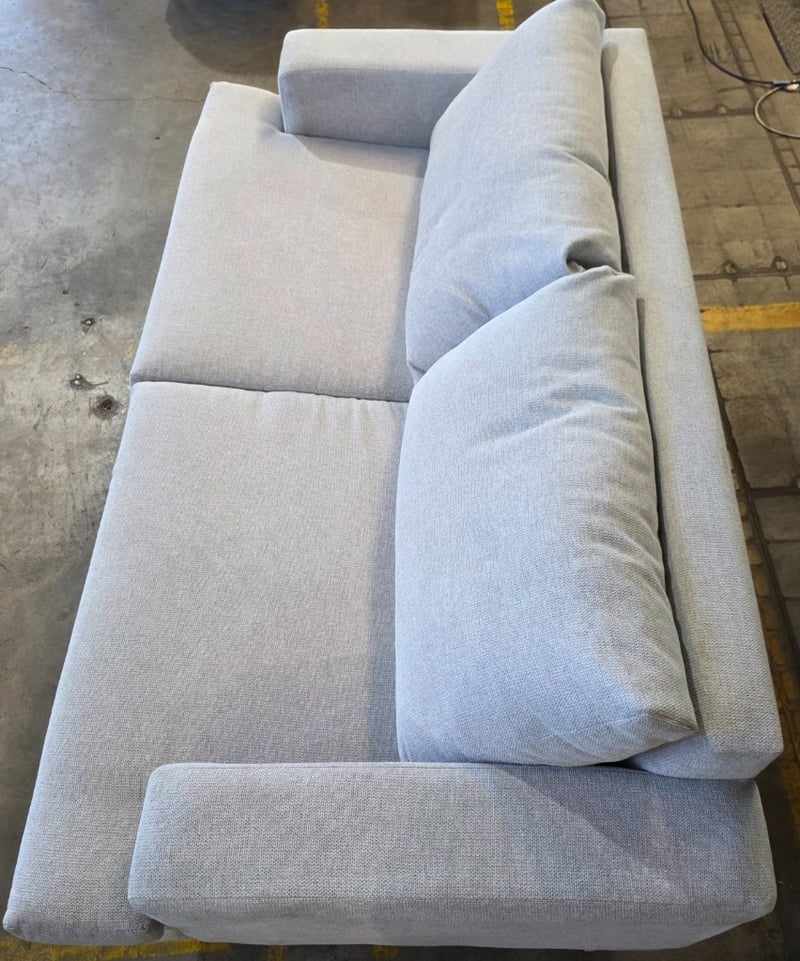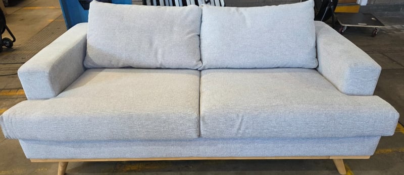 Two seater couch. Grey fabric L 174cm x W 90cm x H 75cmNote: Marks and wear cleaning required.