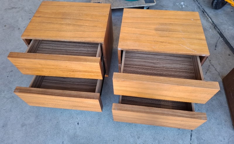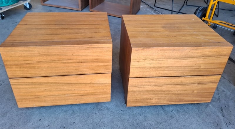 2 x Timber Bed side-table, 2 drawers natural natural finished Dimensions: 52cmW x 42cmD x 57cm H Note: Scratches Marks, cleaning required