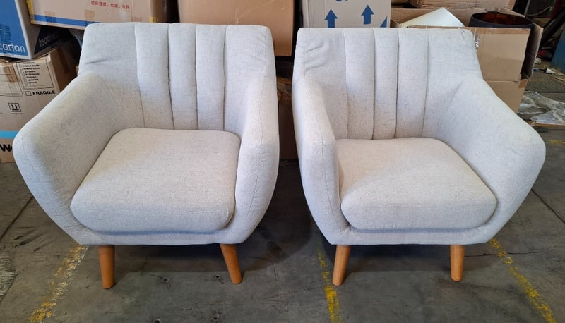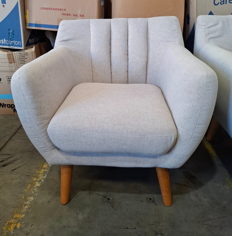 2 x single couches, sand colour fabric, timber natural legs Dimensions: 82cmW x 80cmD x 82cmHNote:Scratches, minor cleaning required