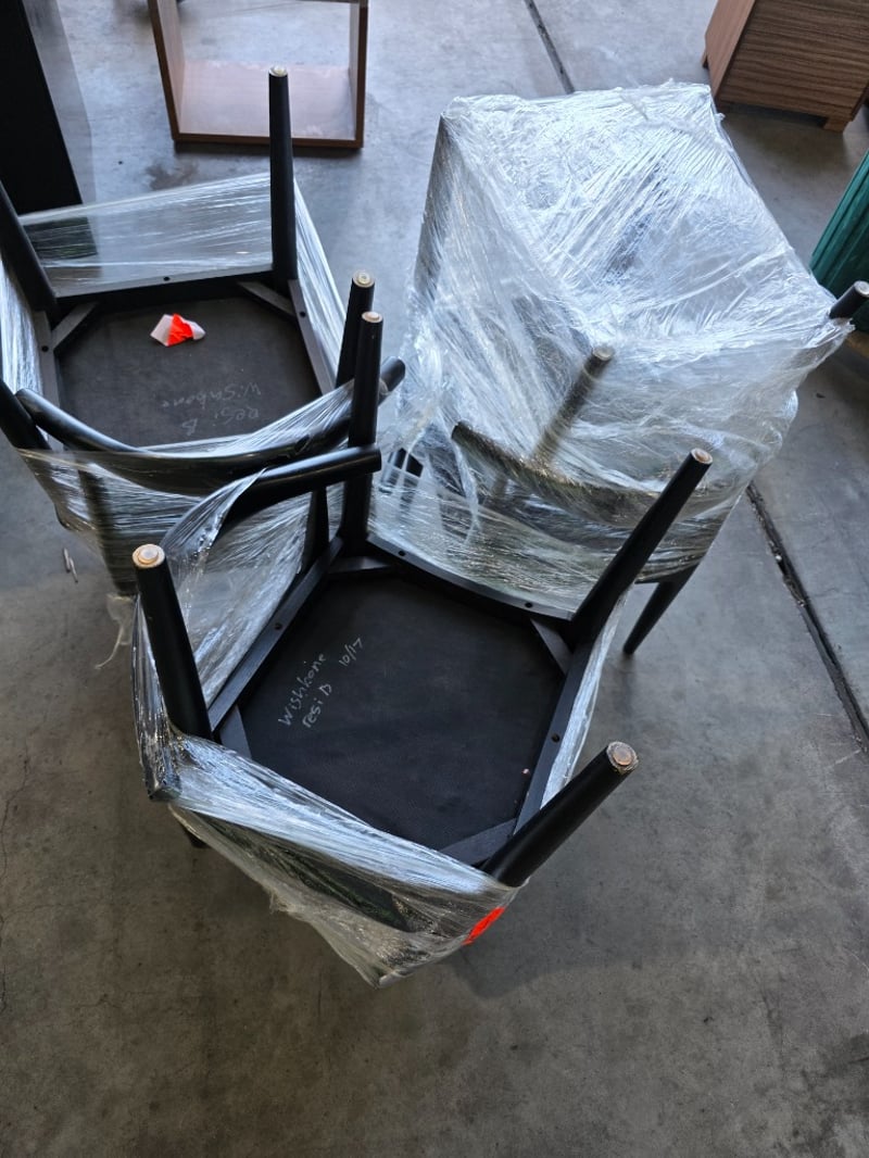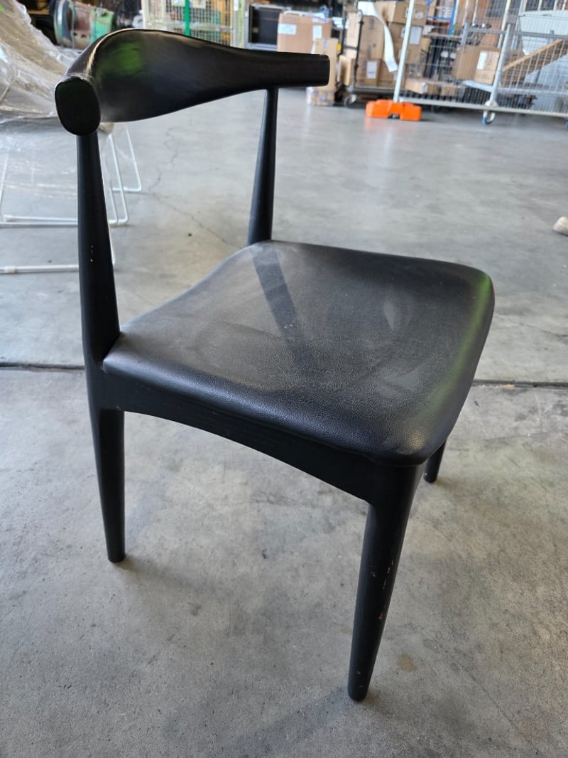 Black dining chairDimensions: 51cmW x 50cmD x 75cm H Bid per chair, must take 6
