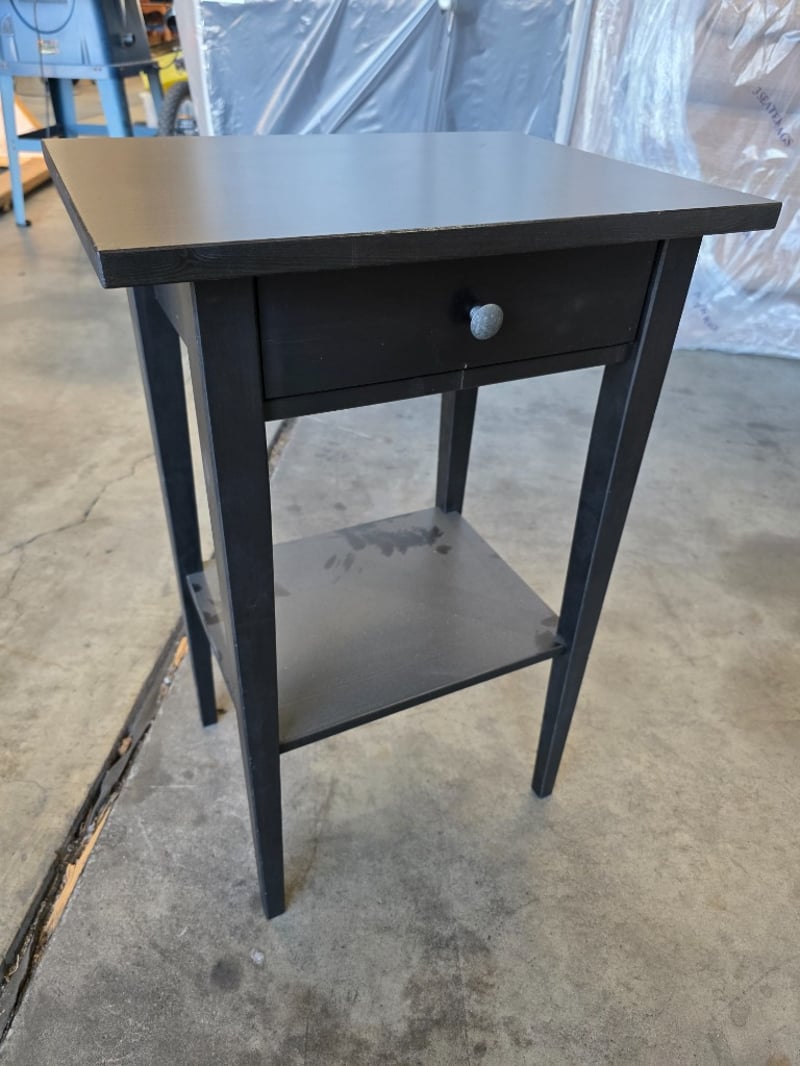 Black side tableDimensions: 46cmW x 35cmD x 70cm H Bid per each, must take 2