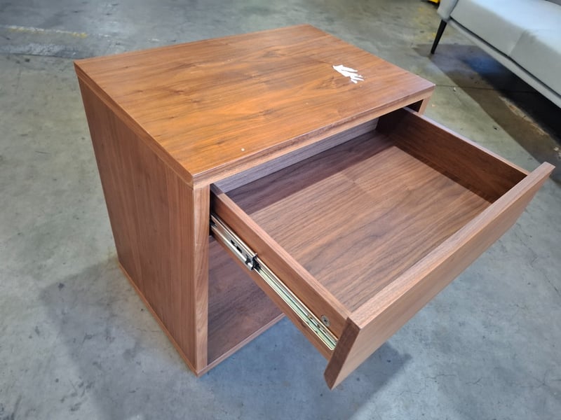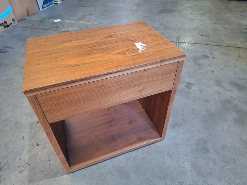 Bedside table, 1 drawerDimensions: 60cmW x 40cmD x 60cmHNote: Scratches, cleaning required