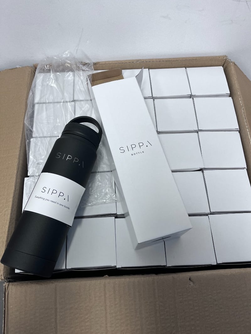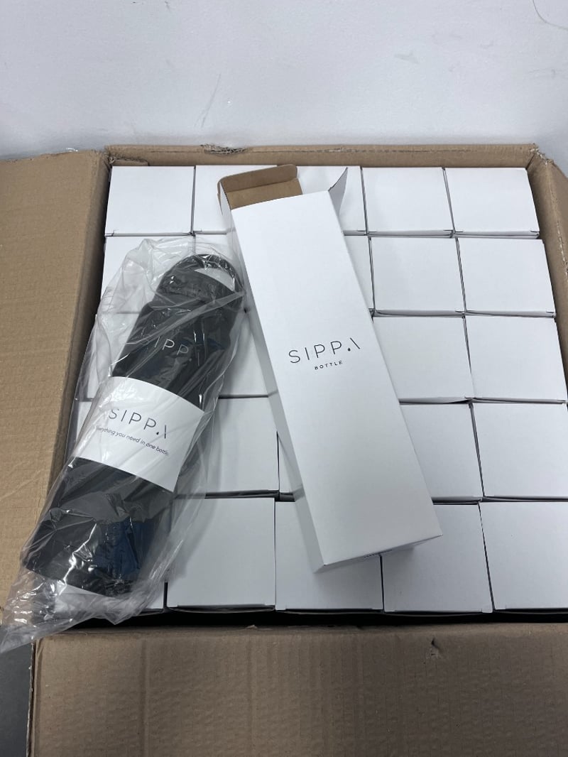 Box of Brand New Sippa Bottles - Black Bulk Lot RRP $1,498.75RRP Per bottle: $59.95 25 bottles To carton 1 Carton Available STORAGETwist the bottom cap to stash your belongings. Fits keys, air pods, cards, cash and much more!LIQUIDKeeping drinks cold or hot for hoursCAPACITY450ml liquid capacity MATERIALStainless Steel | BPA Free | Waterproof | Double Wall CLEANINGUse mild soap and warm water. No dishwasher or harsh cleaning agents.Located: 60 Marple Avenue, Villawood