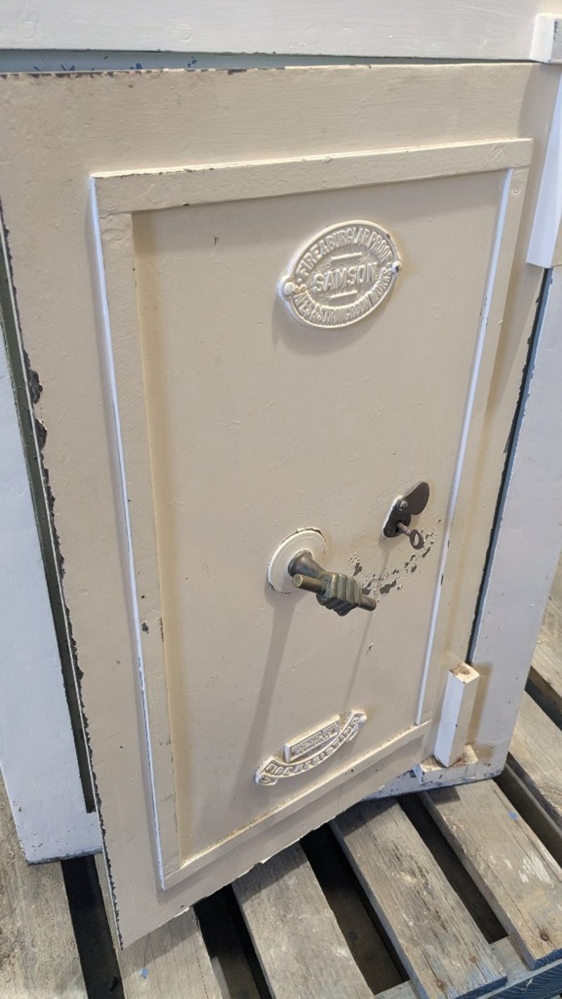 Samson Fire Resisting Safe, White, Includes KeyDimensions: 620mm(W) x 610mm(D) x 920mm(H)NOTE: INSPECTIONS HIGHLY RECOMMENDEDLocation: Murarrie, QLD Contact: Mark David - 0437 318 344