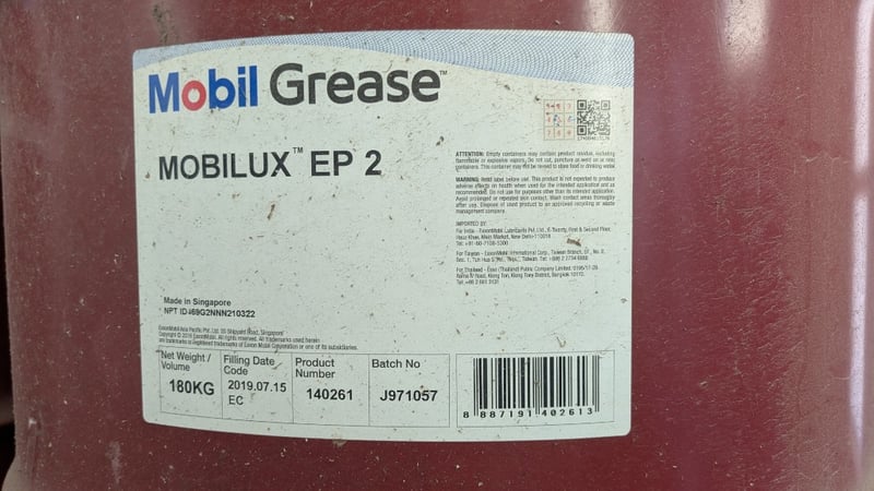 Mobilux EP 2 Grease Type: Lithium-based multi-purpose grease Net Weight: 180 Kg Filling Date: July 15, 2019 NOTE: INSPECTIONS HIGHLY RECOMMENDED Bid Per Each Location: Murarrie, QLD Contact: Mark David - 0437 318 344