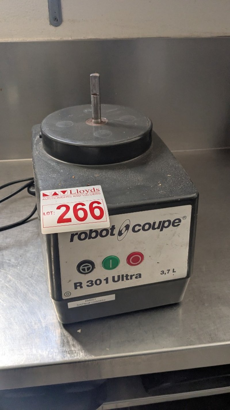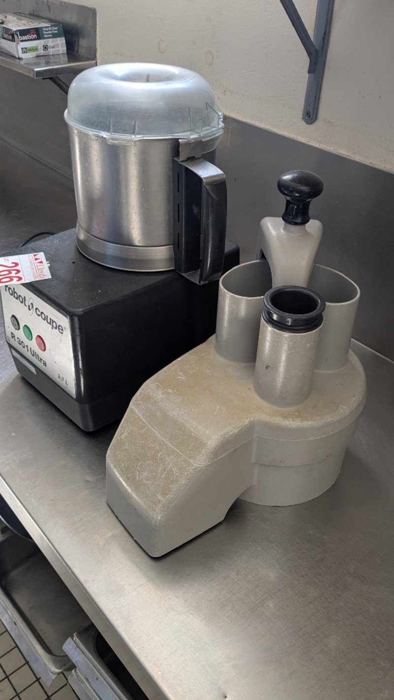 Robot Coupe R 301 Ultra food processorBrand: Robot coupeModel: R301Key Features: Stainless steel 3.7L bowl with handle for durability and easy handling, Polycarbonate see-through lid for monitoring processing without stopping, Powerful 1500W motor designed for continuous, heavy-duty use, Smooth blade assembly for chopping, mixing, and pureeing, Vegetable prep attachment with large feed hopper for high-volume slicing and grating, Magnetic safety system and motor brake for safe operationExtras: R 301 Ultra base unit, 3.7L stainless steel bowl, Lid and pusherNOTE: INSPECTIONS HIGHLY RECOMMENDEDLocation: Murarrie, QLD Contact: Mark David - 0437 318 344