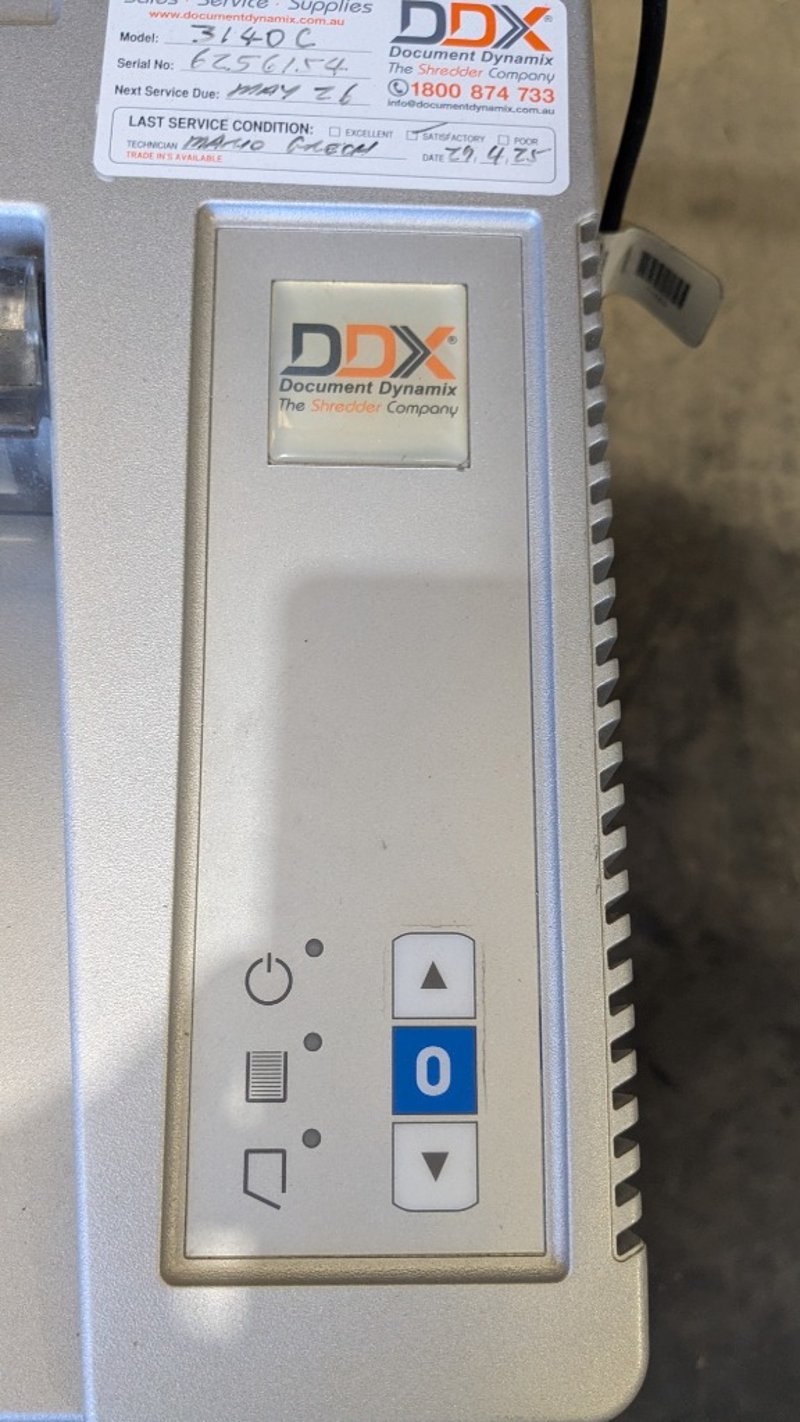 Paper Shredder Fordigraph Model: 3140CKey features: Cross-cut shredding for enhanced document securityRobust motor designed for consistent, everyday useWide paper feed slot suitable for standard office documentsIntegrated waste bin for easy disposal of shredded materialDimensions: 650mm(W) x 600mm(D) x 950mm(H)NOTE:INSPECTIONS HIGHLY RECOMMENDED, BUYER TO PROVIDE OWN LABOUR AND TOOLS FOR SAFE REMOVAL OF ASSETLocation: Murarrie, QLD Contact: Mark David - 0437 318 344