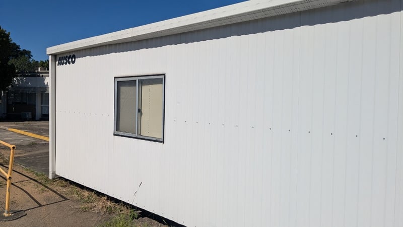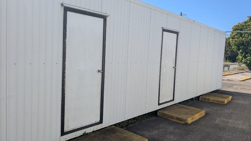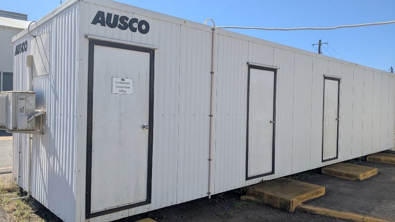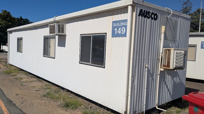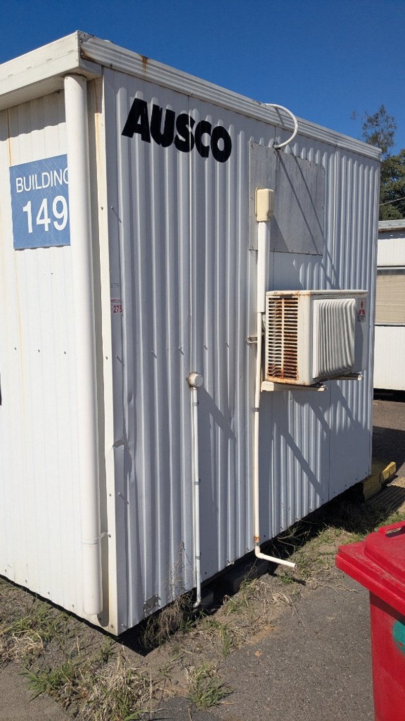 Demountable Building, Metal I Beam Base, Air Con, Power Outlets, Triple Entry Door, Internal Lighting, Storage Cabinets Dimensions: 12m (L) x 3m (W) x 2.85m (H) NOTE:INSPECTIONS HIGHLY RECOMMENDED, BUYER TO PROVIDE OWN LABOUR AND TOOLS FOR SAFE REMOVAL OF ASSET Note: Conditions Of Collection to Site: Must use Universal Cranes as the preferred Crane Company on-site onto preferred Transport or Super Tilt Transport. Location: Murarrie, QLD Contact: Mark David - 0437 318 344