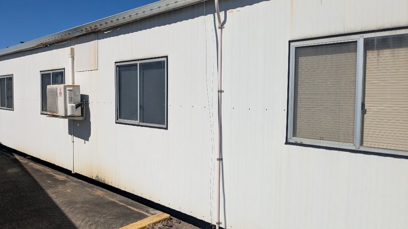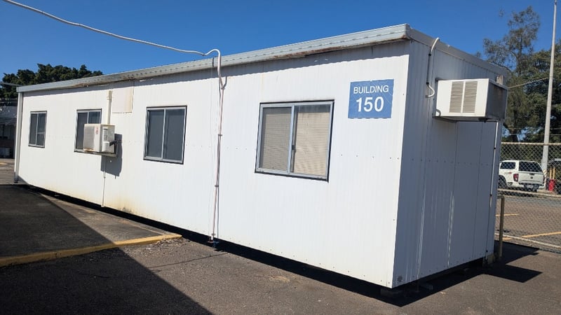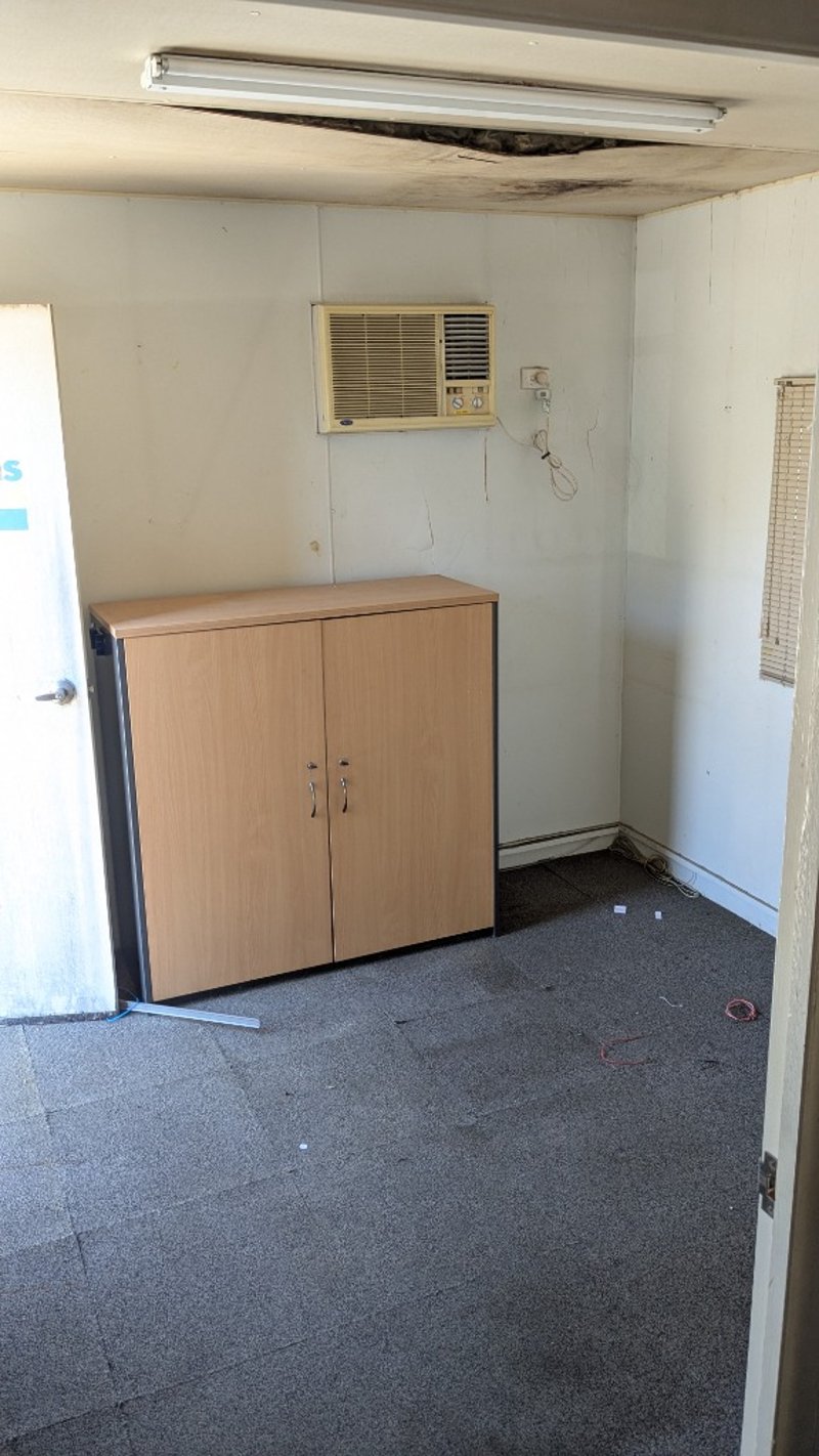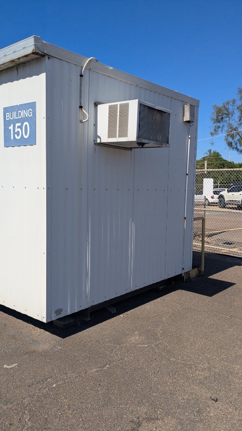 Demountable Building, Metal I Beam Base, Air Con, Power Outlets, Single Entry Door Internal Lighting, Storage Cabinets Dimensions: 12m (L) x 3m (W) x 2.85m (H) NOTE:INSPECTIONS HIGHLY RECOMMENDED, BUYER TO PROVIDE OWN LABOUR AND TOOLS FOR SAFE REMOVAL OF ASSET Note: Conditions Of Collection to Site: Must use Universal Cranes as the preferred Crane Company on-site onto preferred Transport or Super Tilt Transport. Location: Murarrie, QLD Contact: Mark David - 0437 318 344