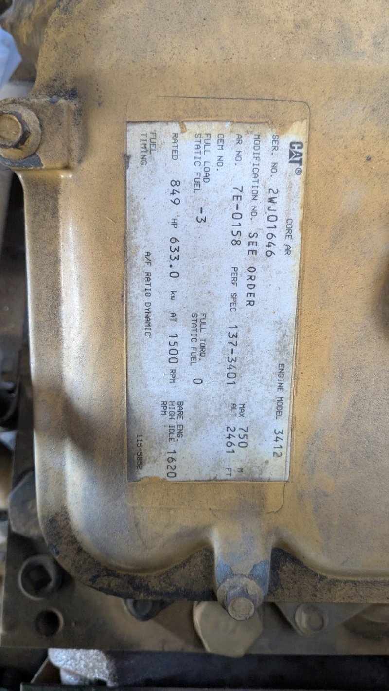 Marine Caterpillar 3412 Engine Brand: CaterpillarModel: 3412Fuel: DieselSerial no: 2WJ01646Hrs Indicated: Unsighted Specifications: Configuration: V12, 4-stroke dieselAspiration: Turbocharged & aftercooledPower output: 600–1400 HP Key Features 636 to 720 hp, 1800 rpmIncludes Fuel Tank, Radiator, Power Box and Exhaust SystemDimensions: Engine 3m (L) x 1.2m (W) x 1.8m (H)NOTE:INSPECTIONS HIGHLY RECOMMENDED, BUYER TO PROVIDE OWN LABOUR AND TOOLS FOR SAFE REMOVAL OF ASSETLocation: Murarrie, QLD Contact: Mark David - 0437 318 344