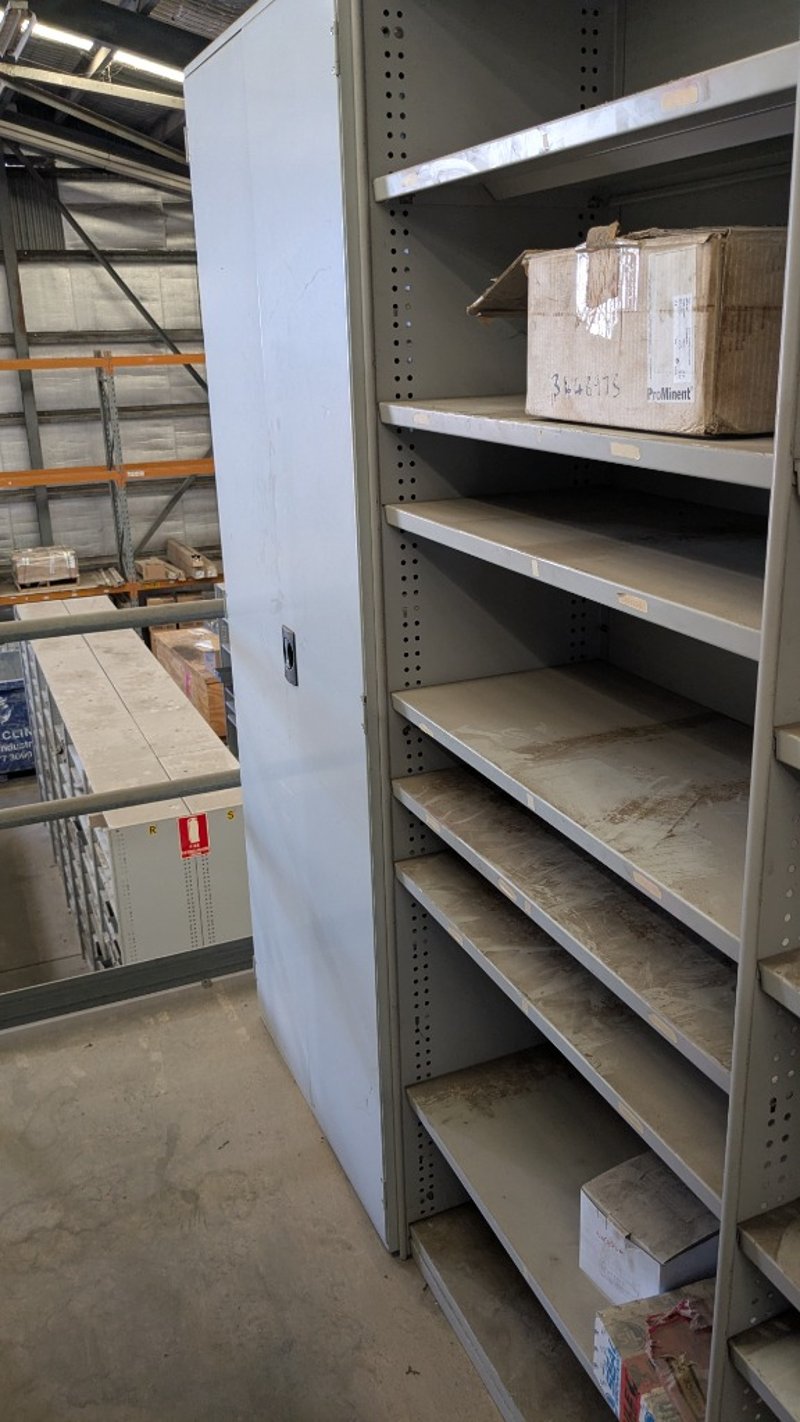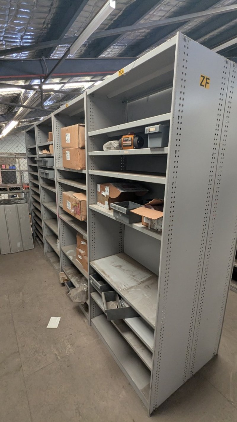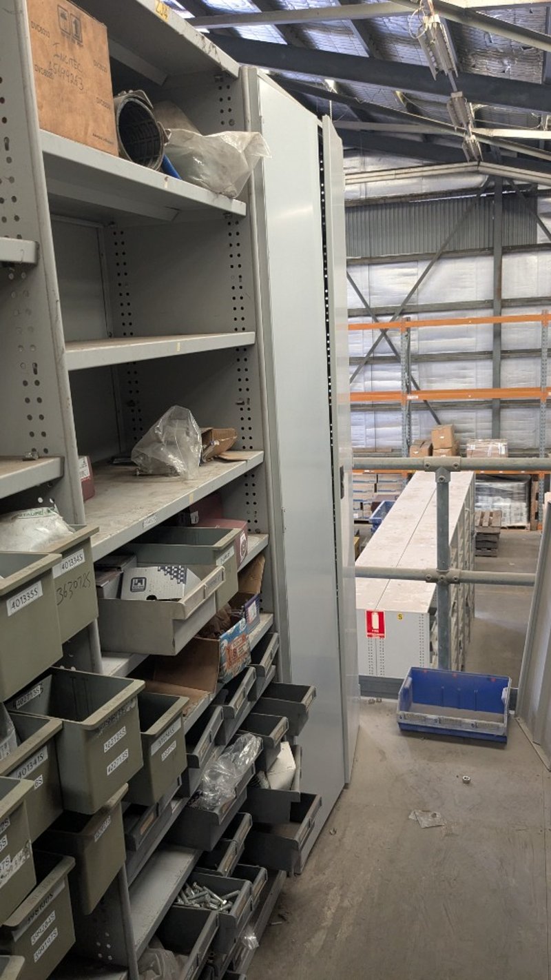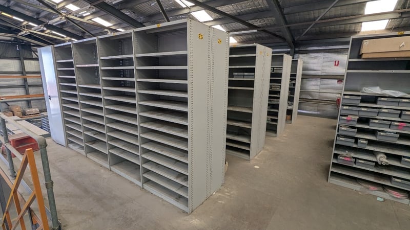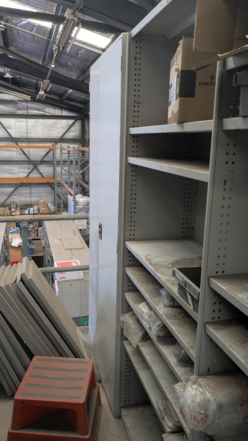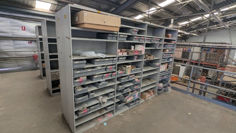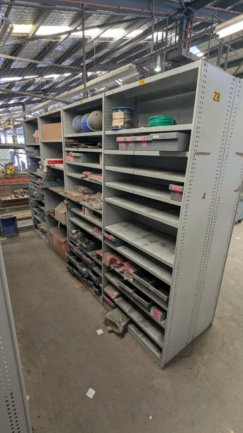 Rut Shelving, 4 bays Wide, Multiple Tier, 14 x Bays Dimensions: 3600mm(W) x 830mm(D) x 2150mm(H) SOLD AS LOT NOTE: DISASSEMBLLY REQUIRED, CONTENTS NOT INCLUDED, INSPECTIONS HIGHLY RECOMMENDED, BUYER TO PROVIDE OWN LABOUR AND TOOLS FOR SAFE REMOVAL OF ASSETLocation: Murarrie, QLD Contact: Mark David - 0437 318 344