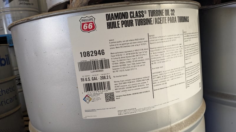 Phillips 66 Diamond Class Turbine Oil 32 Volume: 208L Viscosity Grade: 32 NOTE: INSPECTIONS HIGHLY RECOMMENDED Bid Per Each Location: Murarrie, QLD Contact: Mark David - 0437 318 344