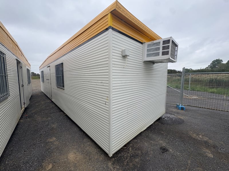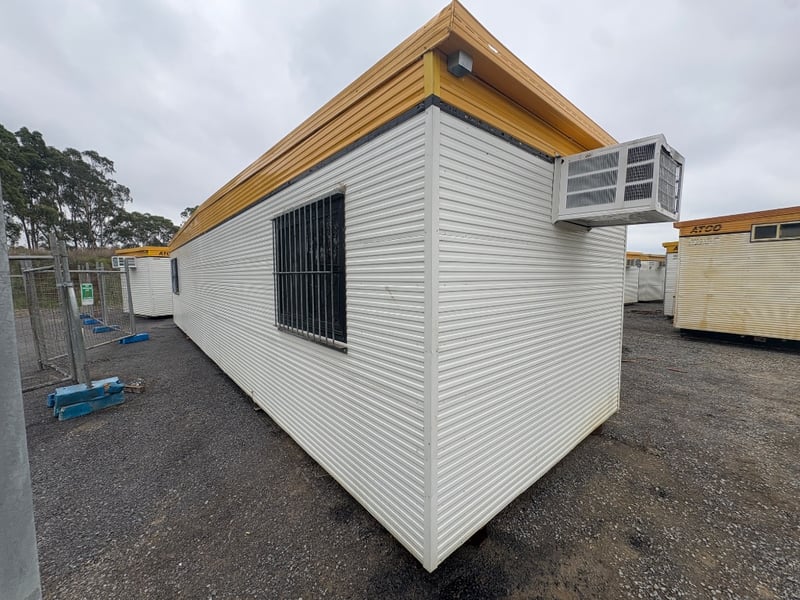 PORTABLE BUILDING COMPLEX, BRAND: ATCO, DIMENSIONS: 12 X 3M, SINGLE DOORS: X1, SLIDING WINDOWS C/W SECURITY BARS: X4, DUAL POWER POINTS: X7, SINGLE POWER POINTS: X4, STRUCTURALLY GOOD, INTERIOR FAIR/GOOD.