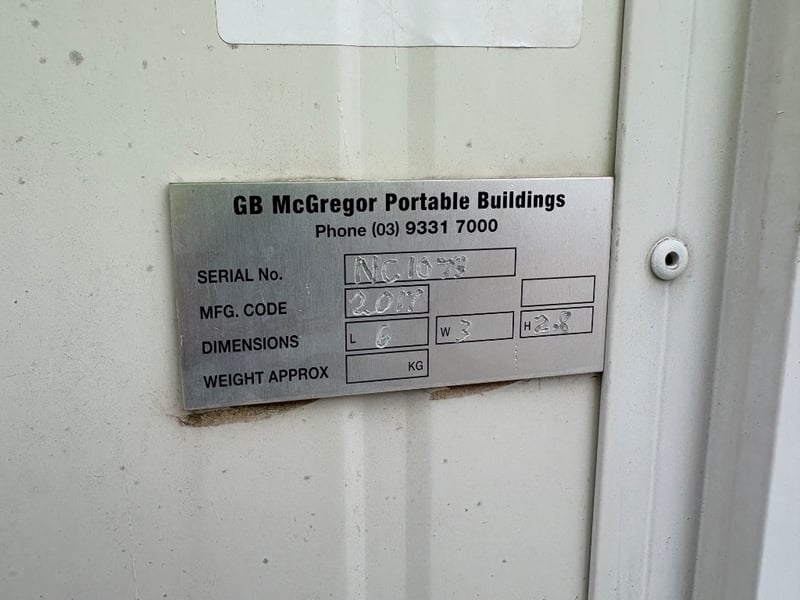 PORTABLE BUILDING COMPLEX, BRAND: ATCO, DIMENSIONS: 6M X 3M, SINGLE DOORS: X1, SLIDING WINDOWS C/W SECURITY BARS: X1, DUAL POWER POINTS: X4, SINGLE POWER POINTS: X1, STRUCTURALLY GOOD, INTERIOR FAIR/GOOD.