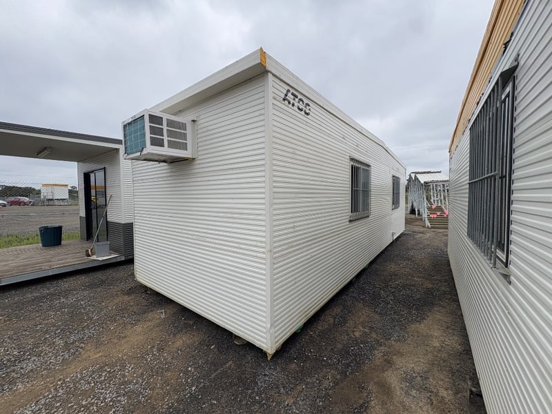PORTABLE BUILDING COMPLEX, BRAND: ATCO, DIMENSIONS: 12M X 6M, SINGLE DOORS: X3, SLIDING WINDOWS C/W SECURITY BARS: X3, DUAL POWER POINTS: X4, SINGLE POWER POINTS: X2, STRUCTURALLY GOOD, INTERIOR FAIR/GOOD.