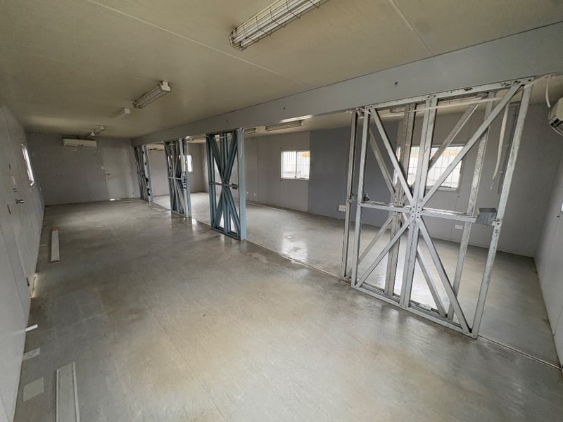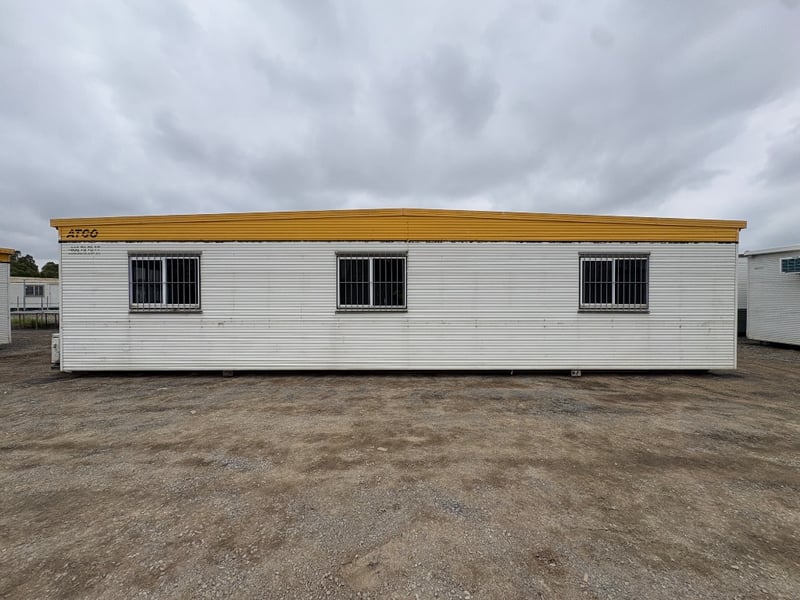 PORTABLE BUILDING COMPLEX, BRAND: ATCO, DIMENSIONS: 12M X 6M, SINGLE DOORS: X2, SLIDING WINDOWS C/W SECURITY BARS: X8, DUAL POWER POINTS: X6, SINGLE POWER POINTS: X4, AIR CONDITIONER: X4, STRUCTURALLY GOOD, INTERIOR FAIR/GOOD.