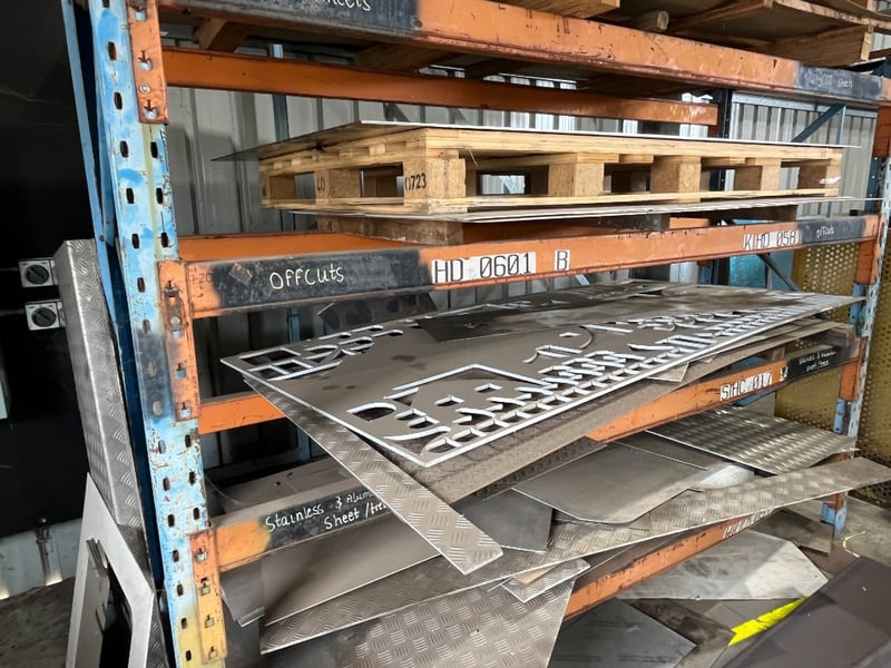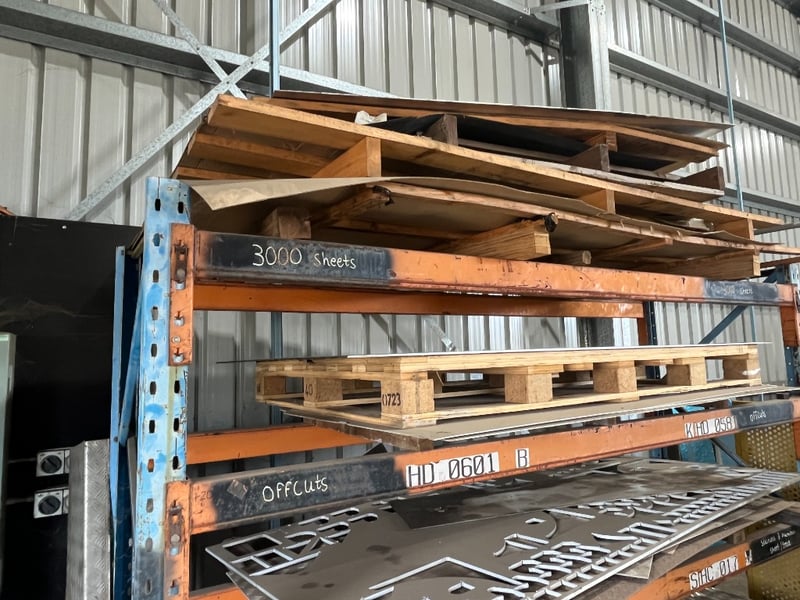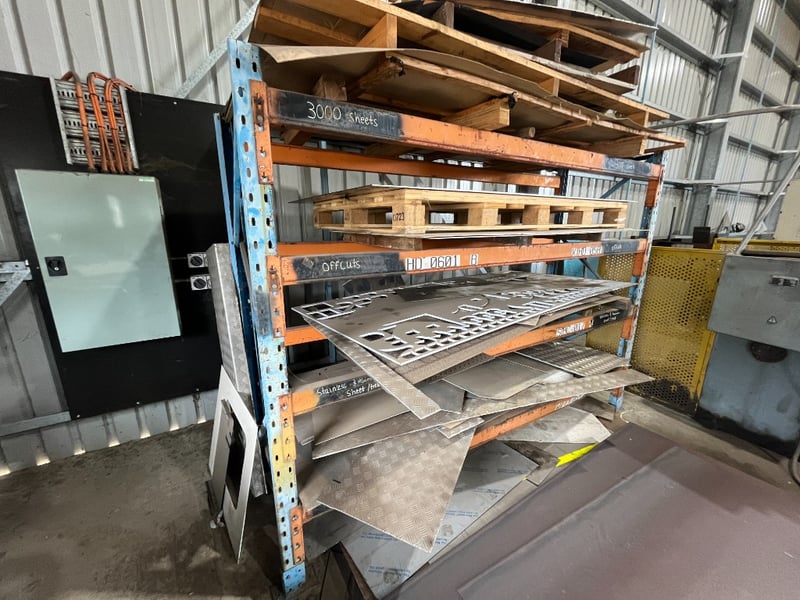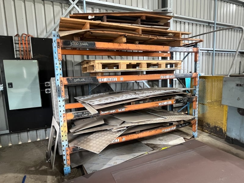 4 Tier Workshop Racking.Includes Contents: Loose Timber & Metal Sheets.