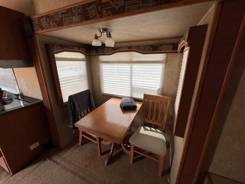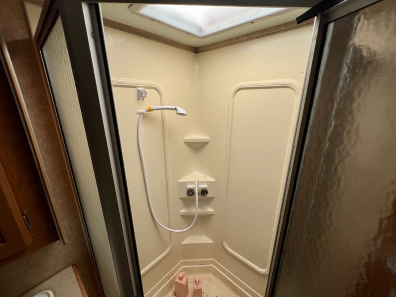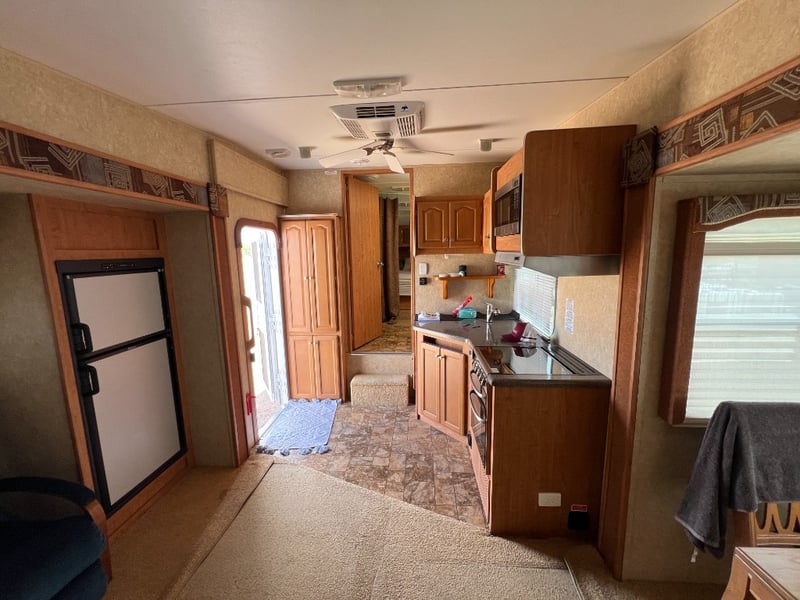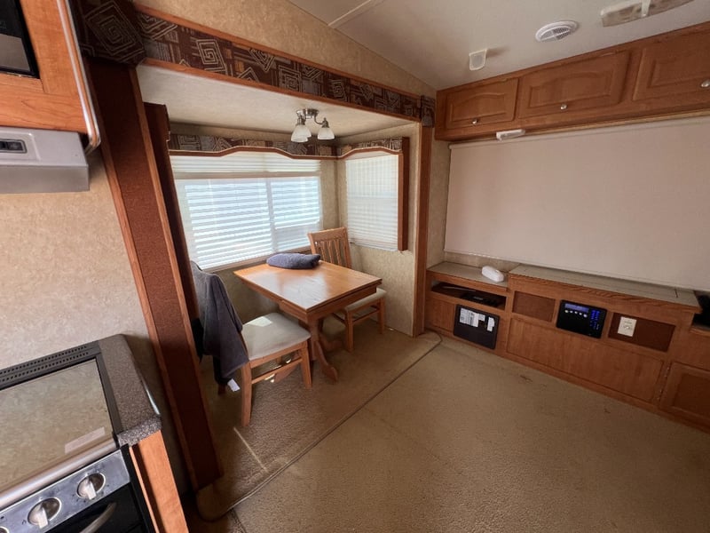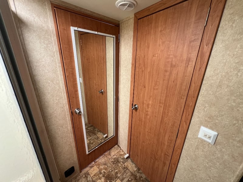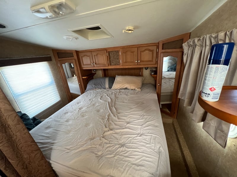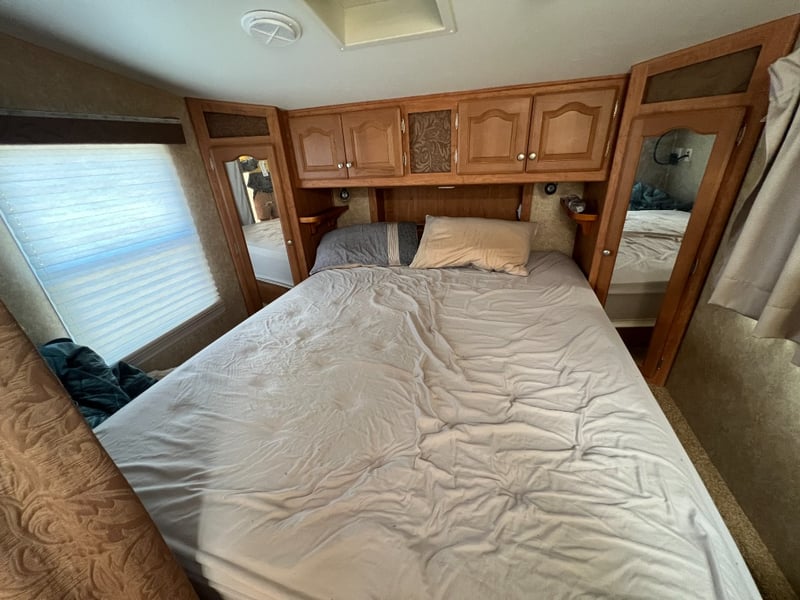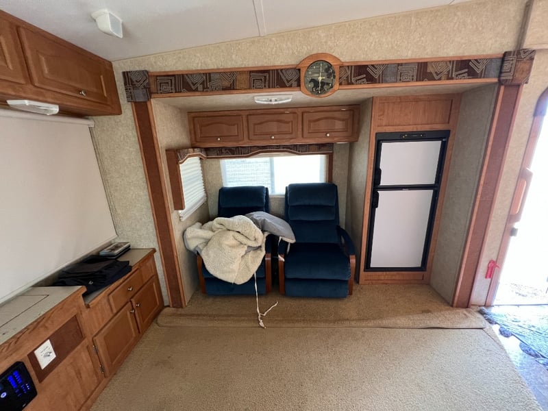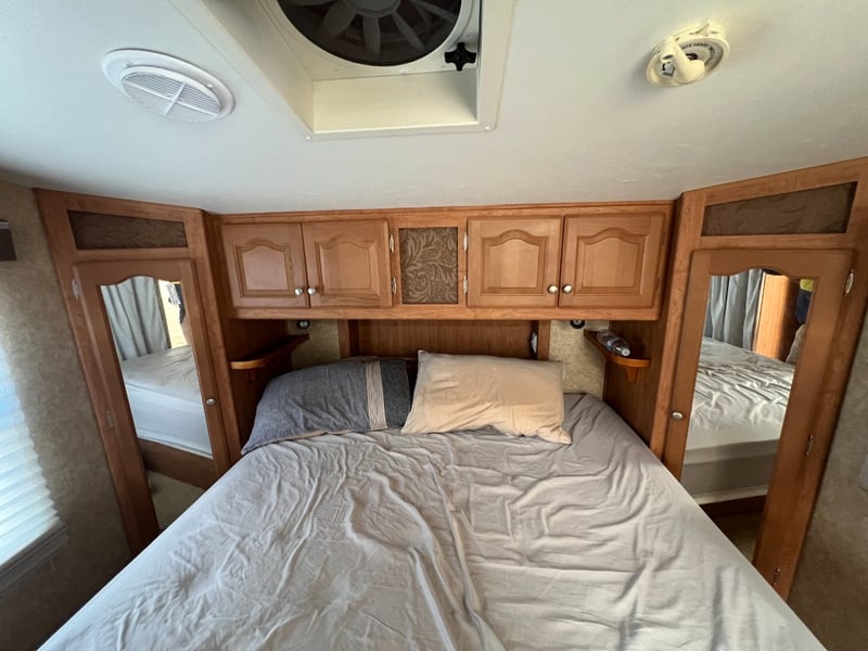 Description: Gooseneck / fifth-wheel coupling that sits over the rear axle, Usually 30–40 ft long, Slide-outs to increase interior space, Tandem axles, Full kitchen, Separate bedroom, Bathroom with full shower, Large lounge with recliners / sofa, air-conditioning and heating.