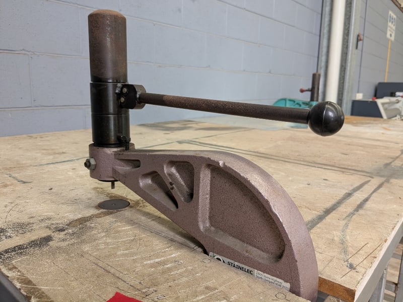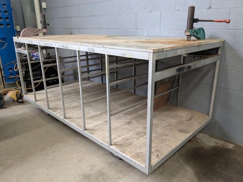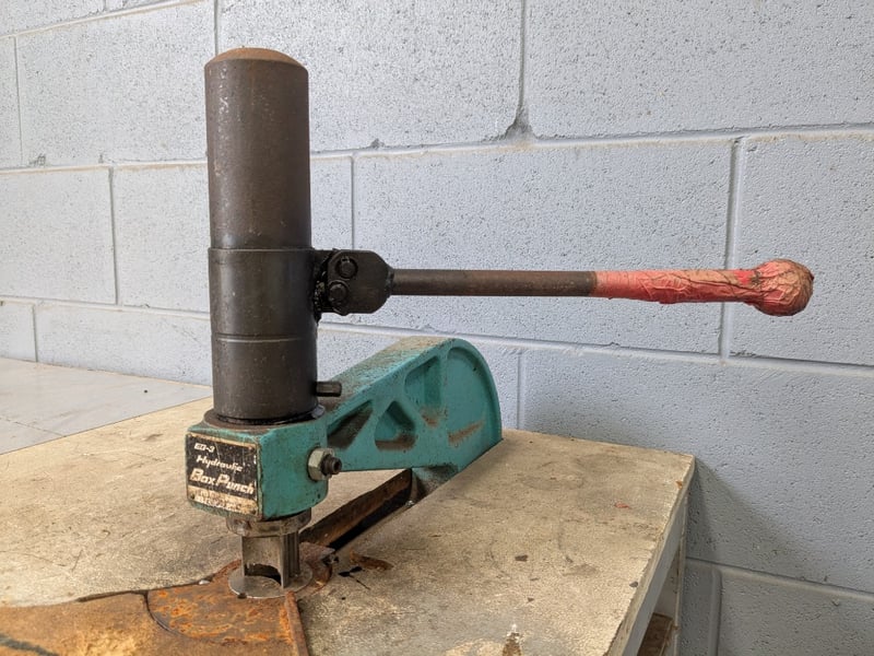 Large Metal Framed Table with EG-3 Hydraulic BoxPunch Sold as lot