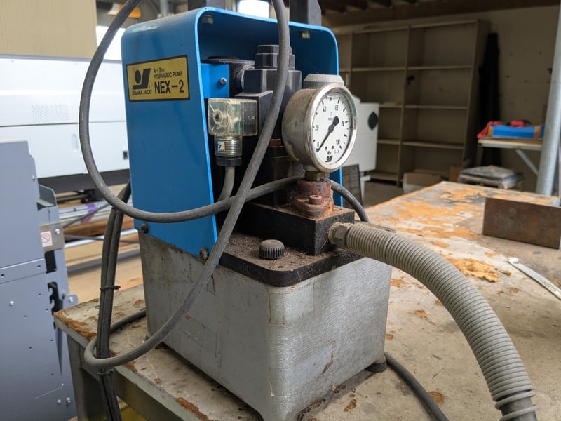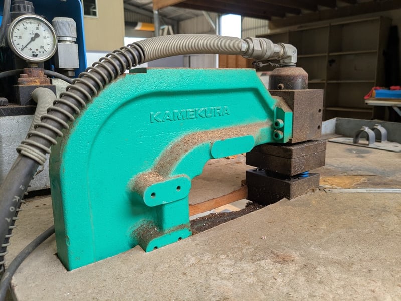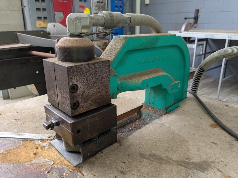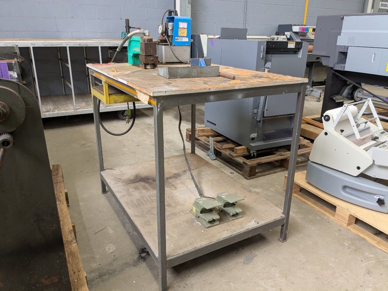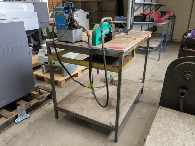 Metal Framed Table with Kamekura Corner Notching Machine Sold as lot