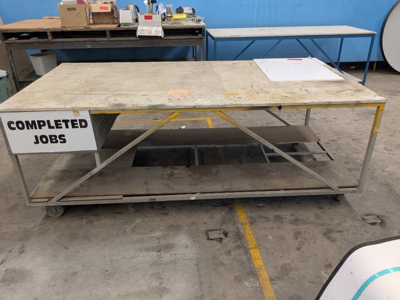 Metal Framed Table Measurements: 2420mm L x 1215mm W x 880mm HNote: Major Wear