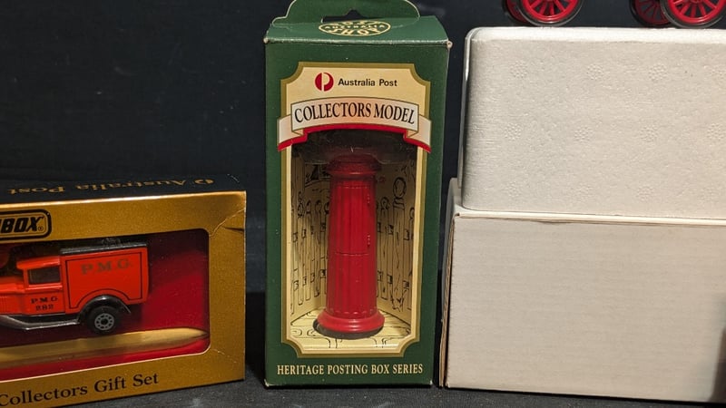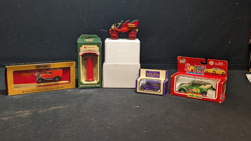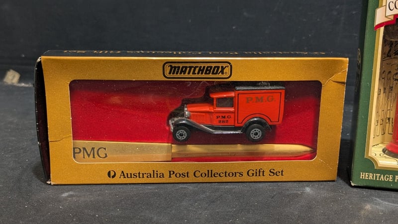 ASSORTED ITEMS INCLUDING MATCHBOX AUSTRALIA POST COLLECTORS GIFT SET, CADBURY DAIRY MILK CHOCOLATE VINTAGE DELIVERY VAN, AND MORE