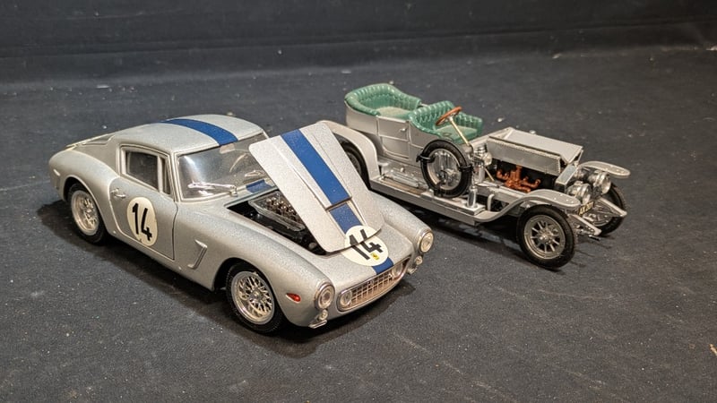 1961 FERRARI 250 GT BERLINETTA SWB COMPETIZIONE 1:18 SCALE MODEL CAR AND 1907 ROLLS-ROYCE SILVER GHOST 1:24 SCALE MODEL CAR